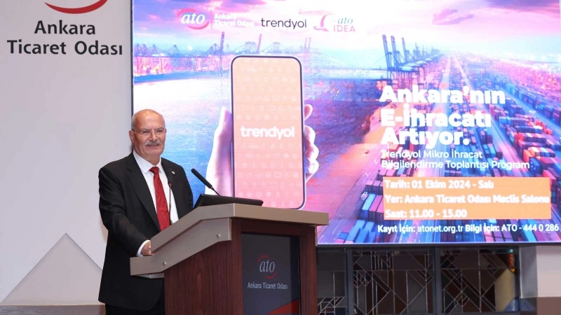 Ankara Ticaret Odası, üyelerinin ihracatını geliştirmeye ve Başkent'in ihracat ve e-ihracat gelirlerini artırmaya yönelik çalışmalarına bir yenisini daha ekledi. ATO'nun ATO İDEA koordinatörlüğünde Türkiye'nin önde gelen e-ticaret ve e-ihracat platformlarından Trendyol iş birliğiyle gerçekleştirdiği “Trendyol Mikro İhracat Bilgilendirme Toplantısı” ATO Meclis Salonu'nda yapıldı. Toplantının açılış konuşmalarını ATO Yönetim Kurulu Başkanı Gürsel Baran ile Ticaret Bakanlığı İhracat Genel Müdür Yardımcısı Bülent Tuncer, Trendyol Satış ve İş Geliştirme Müdürü Özkan Çokaygil ve ATO İDEA Genel Müdürü Gaye Yardımcı yaptı.
