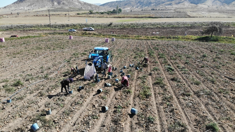 Nüfusunun yüzde 80’inin tarım ve hayvancılıktan geçimini sağladığı Aksaray’da patates hasadı başladı. Tarım ve hayvancılıkta birçok alanda ülke genelinde ilk sıralarda yer alan Aksaray patates üretiminde de Türkiye’de ilk 10 il arasında bulunuyor. Aksaraylı üreticiler ektikleri patatesi toplamak için tarlalarda hummalı bir çalışmaya girerken, patates tarladan tüccara 2 liradan satılıyor. Pazarcı esnafına gelene kadar fiyatı 8 liraya kadar çıkan patates pazarda ise 10 ile 15 lira arasında vatandaşla buluşuyor.