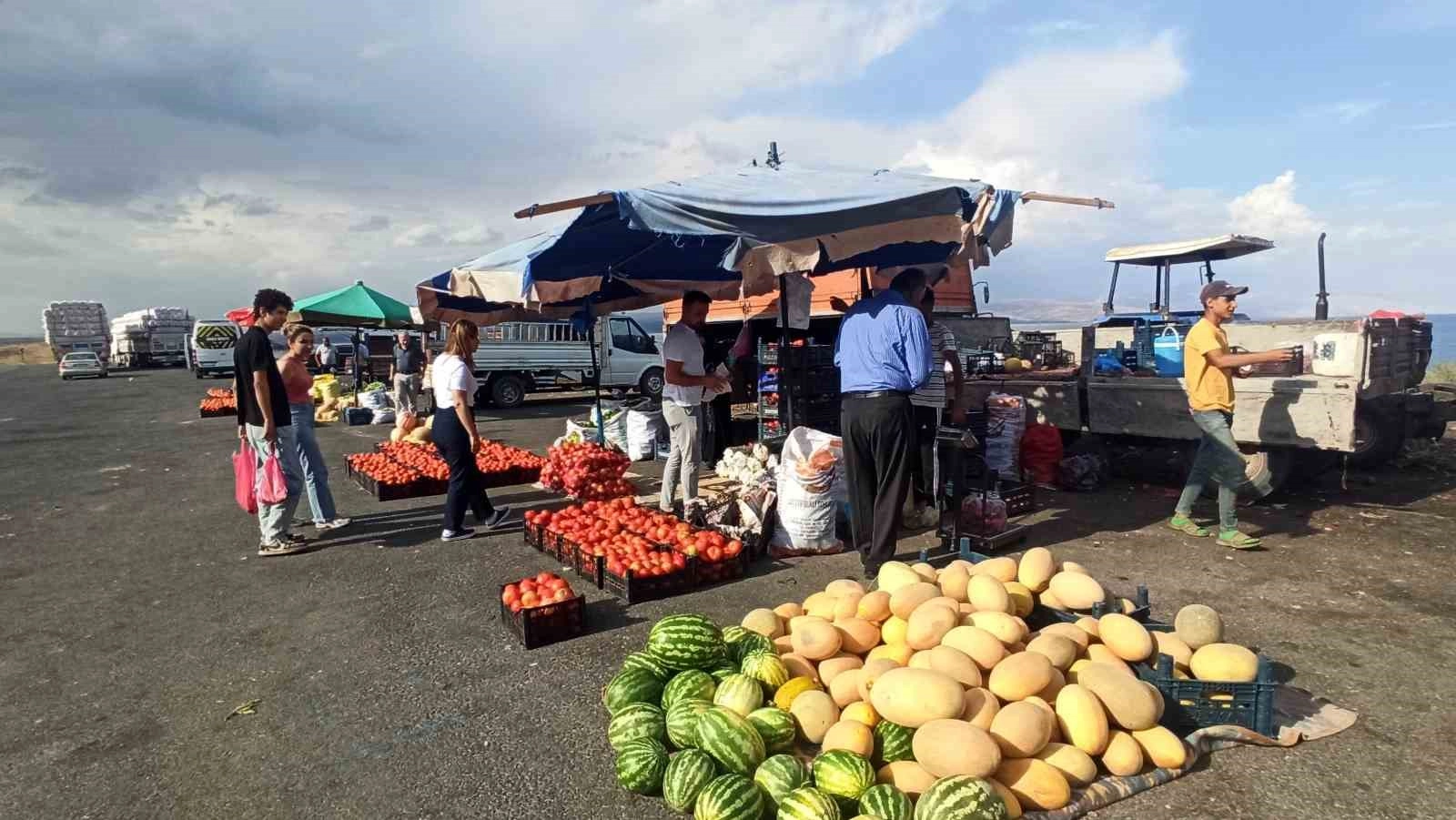 Bitlis’in Ahlat ile Tatvan ilçelerinde yol kenarlarında satılan sebze ve meyveler büyük ilgi görüyor.Çiftçiler, Ahlat-Tatvan kara yolu bitişindeki tarlalarından topladıkları sebze ve meyveleri yol üzerine kurdukları tezgahlarda satıyor. Yoldan geçen sürücüler özellikle açılan tezgahlarda domates, salatalık, biber, kavun, karpuz ve kabak gibi ürünler satılıyor. Sürücülerin büyük kısmı genellikle yöreye has üretilen domates ve biberleri tercih ettiğini belirten çiftçilerden Maşallah Ay, “Yol kenarında bulunan tarlalarımızda topladığımız sebze ve meyveleri sürücülere satıyoruz. Ürünlerimiz taze olduğu için tercih ediliyor. Vatandaşlar genellikle domates ve biber almayı tercih ediyor. Kimileri günlük ihtiyacı için kimileri kışlık kurutmak ve konservelik için kasalarca domates ve biber alıyor. Sattığımız sebze ve meyvelerle kazancımızı sağlıyoruz. Ay sonuna kadar satışlarımız sürecek” dedi.