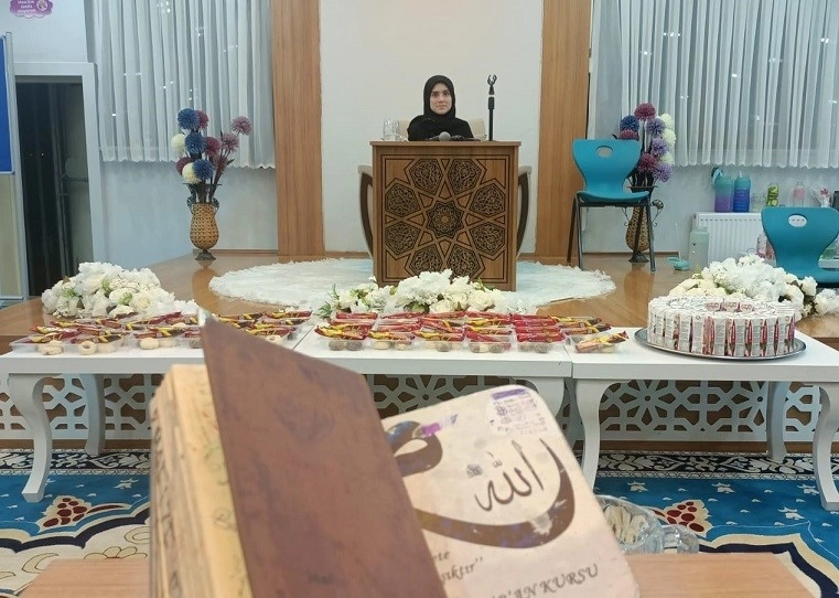 Erzincan’da hafızlık eğitimini tamamlayan 13 yaşındaki Esmanur Şeker bir günde Kur’an-ı Kerimi ezber olarak okuyarak hatim etti.Hafızlık eğitimini tamamlayan Esmanur Şeker, Sümbül Valide Sultan Kız Kur’an Kursunda sabah namazının ardından başlayarak yatsı namazı sonrası 30 cüzün tamamını ezberden okuyarak hatim etti. Erzincan İl Müftüsü Muharrem Gül, İlahiyat Fakültesi öğretim görevlisi Yavuz Mutlu, Sümbül Valide Sultan Kız Kur’an Kursu öğreticileri, Kur’an kursu talebeleri ve ailesinin katılımı ile icazet ve hatim duası merasimi yapıldı.Hatmi Şerifi tamamlamanın mutluluğu gözlerinden okunan Hafize Esmanur Şeker duygularını şu şekilde ifade etti:“Yaklaşık 2 yıl içerisinde hafızlığımı tamamladım. Hocalarımdan Allah Razı olsun. Rabbin hatim etmemi nasip ettiği için hamt-u Senalar olsun. Hafızlık eğitimim süresince her zaman yanımda olan değerli hocalarıma ve aileme çok teşekkür ediyorum” dedi.