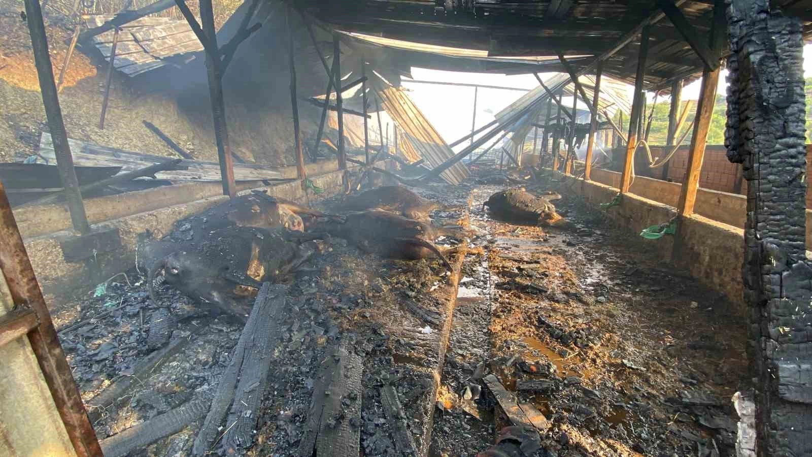 Kocaeli’nin İzmit ilçesinde ahırda çıkan yangında 13 büyükbaş hayvan ile eşek telef oldu. Yangını söndürmeye çalışan bir kişi yaralanırken, ahır ise küle döndü.Yangın, İzmit Akpınar Mahallesi’nde bulunan ahırda meydana geldi. Henüz bilinmeyen sebeple çıkan yangın kısa sürede büyüdü. Ahmet İ., yangını söndürmeye çalışsa da başarılı olamadı. İhbar üzerine olay yerine itfaiye, sağlık ve jandarma ekipleri sevk edildi. Kısa sürede olay yerine gelen itfaiye erleri, yangını söndürmek için çalışma başlattı. Ekiplerin yoğun çalışması neticesinde yangın söndürülürken, 13 büyükbaş hayvan ve eşek telef oldu. Ahmet İ. ise yangını söndürmeye çalışırken hafif şekilde yaralandı. Ahmet İ’ye sağlık ekiplerince ilk müdahalesi yapılırken, hastaneye gitmeyi kabul etmedi.Yangın sebebiyle ahır ve samanlar kül oldu. Olayla ilgili inceleme başlatıldı.