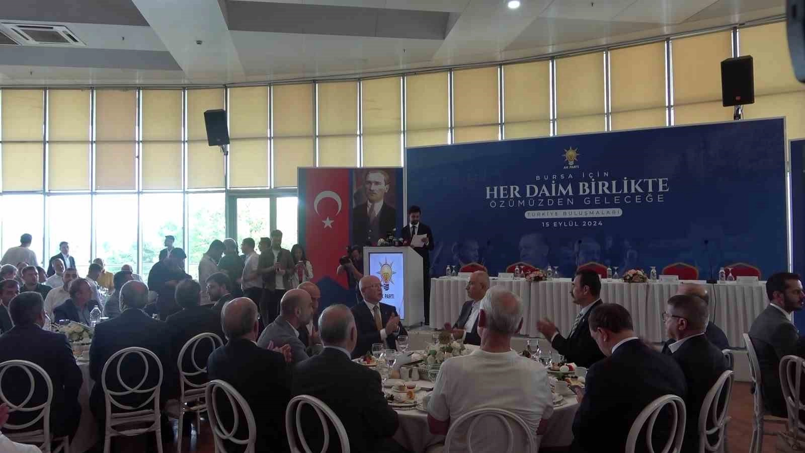 AK Parti Bursa İl Başkanlığı ile Genel Merkez Teşkilat Başkanlığı’nın ülke genelinde başlattığı ’Her daim birlikte, özümüzden geleceğe Türkiye buluşmaları’ programı gerçekleştirildi.AK Parti Bursa İl Başkanlığı’nın ev sahipliği yaptığı program Merinos Atatürk Kültür ve Kongre Merkezi’nde gerçekleşti. Programa AK Parti Genel Başkan Vekili Efkan Ala, AK Parti Bursa İl Başkanı Davut Gürkan, AK Parti Bursa milletvekilleri ve çok sayıda STK üyesi katıldı.Açılış konuşmasını gerçekleştiren AK Parti Bursa İl Başkanı Davut Gürkan, "AK Parti olarak gerçekleştirdiğimiz programlarda gençlerimizden emeklimize, esnafımızdan çiftçimize kadar herkesle talep ve beklentilerini dinliyoruz. Birlik ve beraberliğimizi güçlendiriyoruz. Şehrimize ve insanımıza hizmet sunmak olan yol göstericilerimiz olan STK’larımız ile beraberiz. Sivil ifadesinin en yakıştığı partiyiz. Ülkemize böyle bir zemin oluşturduğumuz için gurur duyuyoruz. Lise yıllarından beri STK’larda görev almaktan gurur duyuyorum. Her birimiz yaşadığımız şehrin ve ilçenin ihtiyaçlarını bilen insanlarız. Her SKT’mızın görüşü bizim için çok önemli. STK’larımız, Türkiye ve dünyada olan afetlere en önde gidenlerdir. Vatandaşımıza tek tek ulaşamadığımız yerlerde, STK’larımız devreye girdi. Cumhurbaşkanı Recep Tayyip Erdoğan’ın liderliğinde Bursa huzur ve barış kenti olmuştur. Şehrimizin değişimi adına ortaya koyduğunuz katkı için herkese teşekkür ederim" dedi.Program çerçevesinde konuşan AK Parti Genel Başkan Vekili Efkan Ala ise, "Böyle bir toplantıda önceden hazırlamış olduğum bir takım değerlendirmeleri sizlerle paylaşmayı arzu ederdim. Ama içimden gelenleri konuşacağım sizlerle. Dün Ankara’dan Aydın’a oradan da Didim’e gittim. Artık sadece Türkiye’nin değil bütün insanlığın evladı olan Ayşenur kızımızın cenaze merasimine katıldık. Onu sonsuzluğa uğurladık. Ayşenur kızımız Filistin’deki soykırıma karşı çıkmak için gittiği Batı Şeria’da oradaki katiller tarafından şehit edildi. Gazze’de binlerce insan çoluk, çocuk, yaşlı demeden katlediliyor. Ortada böyle bir durum varken, vicdanı olmayan büyük güçler bu zulmü destekliyor. Dünya nüfusunun yüzde 25’ine sahip olan İslam ülkeleri bu katliamı seyrediyor. Milletler, ülkeler, yönetimler ve oradaki insanların bir kısmı elinden geleni yapmaya çalışıyor. Batı’da da aynı şekilde bazı vicdanlı insanlar bu duruma isyan ediyor ama önemli bir kısmı çaresizlik içerisinde durumu seyrediyor. Dünyanın en önemli varlıklarından olan petrolün, enerjinin büyük bir çoğunluğuna sahip olan İslam dünyası neden bu hale düştü. Bu durumu sorgulamamız gerekiyor. Hiç kimse orada yapılan zulme dur diyemiyor. Ben buraya kara yoluyla dört saatte geldim. Yolculuk yaparken bütün bu yaşananlar zihnimden geçti. Altyapıda gerçekten çok büyük bir mesafe katetmiş bir Türkiye var. Türkiye petrol zengini bir ülke değil. Irak öyle mesela. Dünyadaki petrolün yüzde 9’u Irak’ta ama perişan durumda. Biz İslam ülkeleri içerisinde kendi emeğiyle, birikimiyle mesafe kateden bir ülkeyiz. Onun için birlik olup Türkiye’yi hep beraber ayağa kaldırmalıyız" şeklinde konuştu