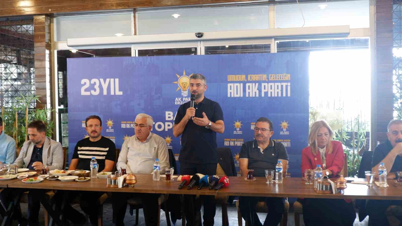 AK Parti Erzurum teşkilatı basın ile buluştu, Erzurum’a dair gündemdeki konular değerlendirildi.AK Parti Erzurum İl Başkanı İbrahim Küçükoğlu, Erzurum Milletvekilleri Selami Altınok, Fatma Öncü ve Mehmet Emin Öz, Yakutiye Belediye Başkanı Mahmut Uçar, Palandöken Belediye Başkanı Muhammet Sunar, Yakutiye, Palandöken ve Aziziye ilçe yöneticileri ile diğer teşkilat yöneticilerinin katılımıyla medya buluşma programı gerçekleştirildi.AK Parti Erzurum İl Başkanı İbrahim Küçükoğlu ilin tüm konularına karşı duyarlı ve hassas olduklarını, çözüm noktasında hem siyaseten hem de kamusal anlamda muhataplarıyla sürekli iletişim içinde olduklarını dile getirdi.AK Parti Erzurum Milletvekilleri Selami Altınok, Fatma Öncü ve Mehmet Emin Öz’de yaptıkları konuşmalarda Erzurum’un çözüm bekleyen sorunlarına ve taleplerine yönelik girişimlerinin devam ettiğini, Erzurum hak ettiği her türlü kamusal yatırım ve projeyi elde edeceğine inandıklarını anlattı.AK Parti’nin medya buluşmasında; Erzurumspor, stadyum, hızlı tren, 2. Organize Sanayi Bölgesi, 300 yataklı yeni öğretmen evi, yapılacak olan yeni yem fabrikası, Adalet Eğitim Merkezi ve Hakimevi, Erzurum’a gelen uçak sayısı ve bilet fiyatları, AK Parti’ye geçiş yapan belediye başkanları, tarımsal sulamada kullanılacak barajların yapımı, özellikle Karadeniz bağlantısını sağlayacak yollar ve tüneller gibi gündeme dair bir çok konu konuşuldu.