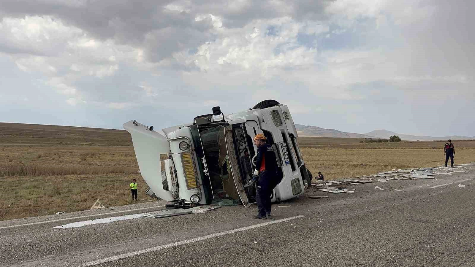Aksaray’da kontrolden çıkarak şarampole devrilen tır hurdaya dönerken, kazada sürücü yaralandı.Kaza, akşam saatlerinde Aksaray-Nevşehir karayolun 20. kilometresinde yaşandı. Edinilen bilgiye göre, Nevşehir’den Aksaray istikametine seyreden M.K. (42) idaresindeki 42 GV 928 plakalı tır, Ağzıkarahan köyü civarına geldiğinde sürücüsünün direksiyon hakimiyetini kaybetmesi sonucu şarampole devrildi. Yan yatan tır hurdaya dönerken sürücüsü de yaralandı. Kazayı gören diğer sürücüler durumu hemen 112 Acil Çağrı Merkezine bildirdi. İhbar üzerine olay yerine polis, jandarma ve sağlık ekibi sevk edildi. Kısas ürede olay yerine gelen 112 Acil Yardım ekipleri yaralıyı Aksaray Eğitim ve Araştırma Hastanesi Acil Servisine kaldırdı. Burada tedavi altına alınan sürücünün sağlık durumunun iyi olduğu öğrenilirken, kazayla ilgili tahkikat başlatıldı.