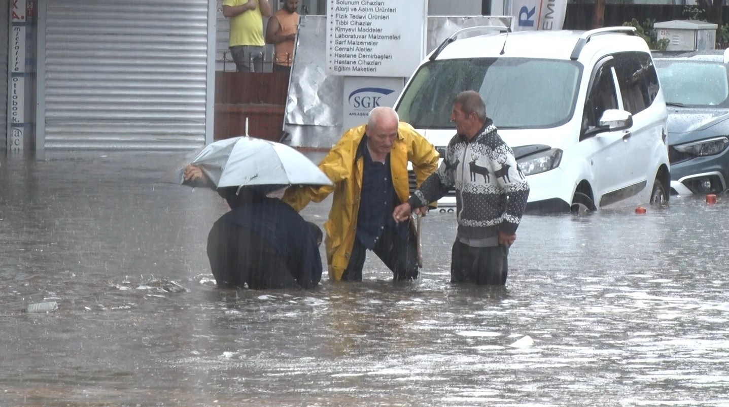 Ankara’da kısa sürede etkisini gösteren gök gürültülü kuvvet sağanak yağış sonrası yollar göle döndü, araçlar ve iş yerleri ise su içinde kaldı.Meteoroloji Genel Müdürlüğünün sosyal medya hesabından yapılan paylaşımda, Ankara’nın; Çubuk, Akyurt, Kahramankazan, Pursaklar, Keçiören, Etimesgut, Yenimahalle, Sincan, Çankaya, Gölbaşı ve Mamak ilçelerinde gök gürültülü kuvvetli sağanak yağış uyarısı yapıldı. Uyarının ardından kısa sürede etkisini gösteren yağış sonrası Ankara’nın Çankaya ilçesinde bulunan Sıhhiye semtinde biriken su birikintileriyle araçlar su içinde kalırken, göle dönen cadde üzerinde trafikte aksamalar yaşandı.Bazı dükkanlarda su baskınları maddi hasara yol açarken, yağmur suları kaldırımları aşarak dükkanların içerisine girdi."Geçtiğimiz yıl çalışmalar da oldu ama yine de yeterli gelmiyor"Yaklaşık 20 yıldır bölgede esnaflık yapan İbrahim Balcı, yılda 2-3 kere aynı bölgede sel olduğunu dile getirerek, “Her sene esnaf bu sıkıntıyı yaşıyor. Geçtiğimiz yıl çalışmalar da oldu, ızgaralar yapıldı ama yine de yeterli gelmiyor, su burada birikiyor. Esnaf gerçekten de mağdur durumda kalıyor” ifadelerini kullandı."Tahminen 100-150 bin lira civarında hasar vardır"Çevre Esnafı Faik Erdoğan ise yağış sonrası işletmesinin su altında kaldığını kaydederek, “Maalesef Ankara’da belli bir oranın üzerinde yağmur yağdığında bu bölge tamamen sular altında kalıyor. Belediye bazı çalışmalar yaptı ama maalesef çok yeterli olmadı. Bu sene bu üçüncü su baskını oldu. Yardımda bulunuyorlar, sağ olsunlar ama engellenebilirse biz daha çok mutlu olacağız. İçerideki bütün malzemeler suyun altında kalıyor, elektronik malzemeler bozuluyor. Tahminen 100-150 bin lira civarında hasar vardır” dedi.