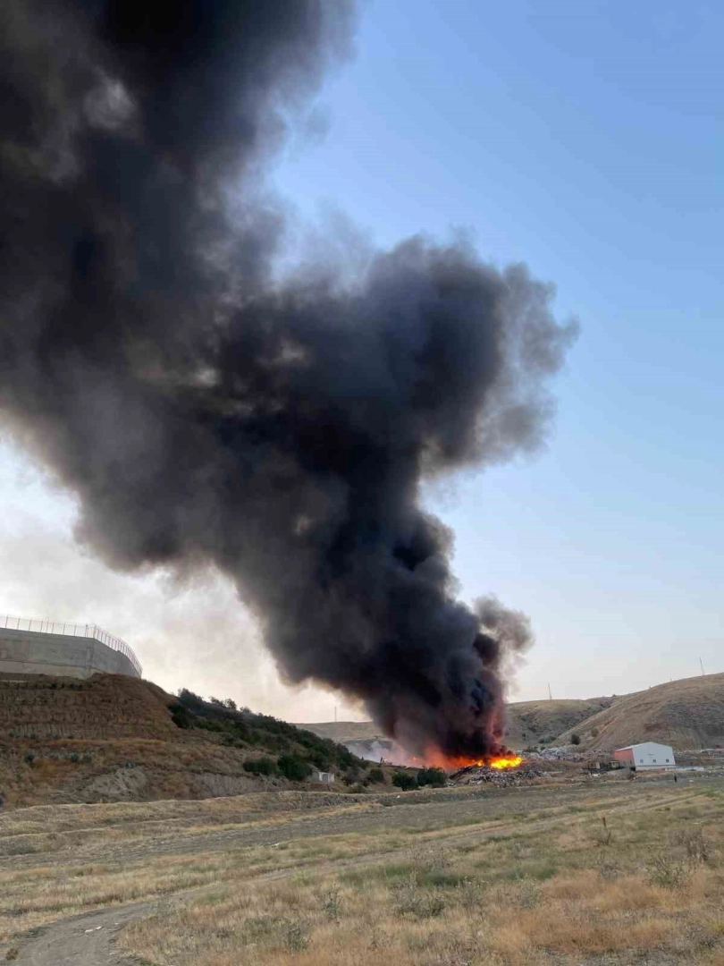 Ankara’nın Akyurt ilçesinde çöp toplama alanında yangın çıktı. Yangında gökyüzünü dumanlar kapladı.Akyurt ilçesinde akşam saat 18.00 sıralarında çöp toplama alanında yangın çıktı. Alevler içinde kalan alana çok sayıfa itfaiye ekibi sevk edildi. Yangına 100’e yakın personel, Ankara Büyükşehir Belediyesi itfaiyesine bağlı 7 araç ve 2 büyük tanker, Akyurt Belediyesi’ne ait 3 arazöz ve 4 kepçe, Ankara Büyükşehir Belediyesi’ne ait 4 tane tanker, 2 paletli kepçe ile müdaha ediliyor. Yangın nedeniyle ilçenin üstünü duman kaplarken, vatandaşlar zor anlar yaşadı.