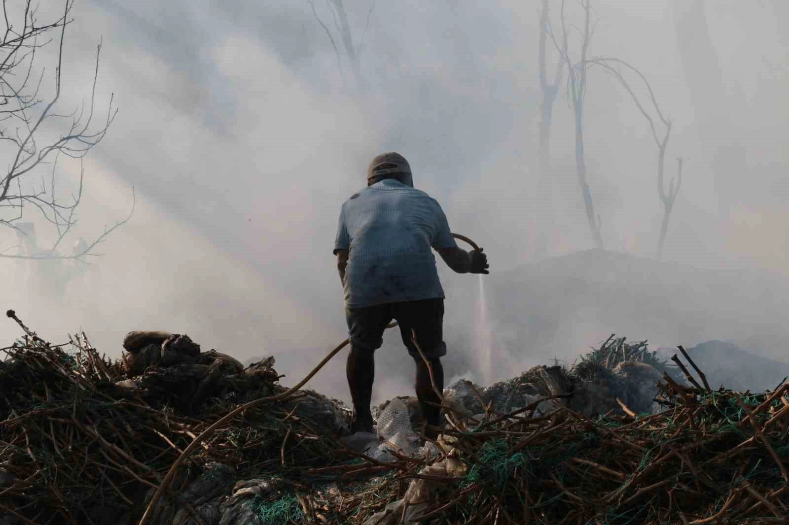 Antalya’nın Aksu ilçesinde ormanlık alanda başlayan ve seralara sıçrayan yangın kontrol altına alındı.Murtuna Mahallesi 9076 Sokak’taki ormanlık alanda saat 17.00 sıralarında ormanlık alanda başlayan yangın seralara sıçradı. Seraların plastiklerini tutuşturan yangın seralarda maddi hasara yol açtı. Bölgede Antalya Orman Bölge Müdürlüğü’ne ait bir helikopterin havadan ve yer ekipleri ile AFAD, jandarma, Antalya Büyükşehir Belediyesi İtfaiye Daire Başkanlığı ekipleri ve Aksu Belediyesi’nin itfaiye ekipleri söndürme çalışmalarında bulundu. Söndürme çalışmalarına bölgede yaşayan çiftçiler de traktör ve su tanklarıyla destek verirken, korkusuzca yangının içine girip ateşe müdahalede bulunmaları dikkat çekti. Çıkan yangında, çok sayıda sera ve ormanlık alan zarar gördü.Murtuna Mahallesi’nde yaşayan Rıza Aksu, aynı yerde daha öncede 3 kez yangın çıktığını belirterek, bugün Alaylı Mahallesi’nde çıkan yangının ekiplerin müdahalesinin ardından tekrar başladığını ve Murtuna’ya sıçradığını söyledi. Aksu, “Üst tafta önceden 3 kez yangın çıktı, bugün saat 14.00’te yine yangın çıktı, söndürdük. Yangın sonra ileriye doğru atladı, ekiplerimizle birlikte müdahale ettik, yangınımızı tekrar kontrol altına aldık. Şu anda 50 dönüm seranın zarar gördüğünü düşünüyorum, seralara çok bakamadık, biz önce ormanlık alana müdahale ettik. Canlar gitti, insanlarımız zarar gördü, ormanlarımız gitti" diye konuştu.