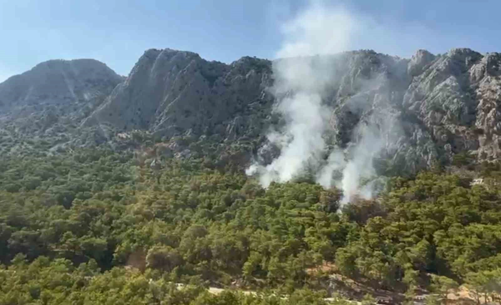 Antalya’da ormanlık alanda çıkan yangın, havadan ve karadan süren 4 saatlik müdahale sonucu kontrol altına alındı. Küçük çaplı devam eden yangın bölgesinde kontrol ve soğutma çalışması devam ederken, yangında 3 hektar alan zarar gördü.Konyaaltı ilçesi Sarısu Mahallesi’ndeki dağlık alanda saat 14.30 sıralarında orman yangını çıktı. Yangına itfaiye ekipleri ve Orman Bölge Müdürlüğüne bağlı 3 uçak, 2 helikopter, 5 arazöz, 2 su ikmal aracı ve çok sayıda yangın işçisi müdahalede bulundu. Rüzgardan dolayı kontrol altına alınmakta güçlük çekilen yangın, 4 saatlik çaba sonucu kontrol altına alınabildi. Kayalık araziye doğru tehlike oluşturmayacak şekilde küçük çaplı devam eden yangın bölgesinde kontrol ve soğutma çalışması ise devam ediyor. Yangında 3 hektar alan zarar gördü.