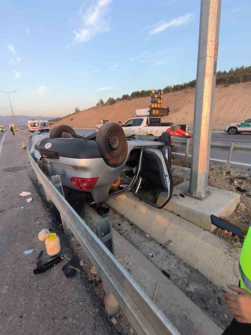 Aydın-Denizli otoyolunda meydana gelen trafik kazasında 3 kişi yaralandı.Kaza, Aydın-Denizli otoyolu Kuyucak ilçesi yakınlarında meydana geldi. Edinilen bilgiye göre, Denizli’den Aydın istikametine seyir halinde olan yabancı plakalı G.Ö. (56) idaresindeki otomobil, henüz bilinmeyen bir nedenle sürücünün direksiyon hakimiyetini kaybetmesi sonucu bariyere çarpıp takla attı. İki şeridi birbirinden ayıran bariyerlerin arasına girerek ters dönen otomobilde bulunan sürücü G.Ö. ve yolcu konumunda bulunan N.O. ile H.B. yaralandı. Kazayı görenler durumu 112 Acil Çağrı Merkezi’ne bildirdi. İhbar üzerine bölgeye sağlık ve otoyol jandarma ekipleri sevk edildi. Kısa sürede olay yerine gelen sağlık ekipleri yaralılara ilk müdahaleyi yaparken, jandarma ekipleri de başka bir kazanın yaşanmaması için önlem aldı. Yaralılar ambulanslarla hastaneye kaldırılarak tedavi altına alındı. Kazaya karışan otomobilin çekici marifeti ile olay yerinden kaldırılmasının ardından trafik normale döndü.Olayla ilgili soruşturma sürüyor.