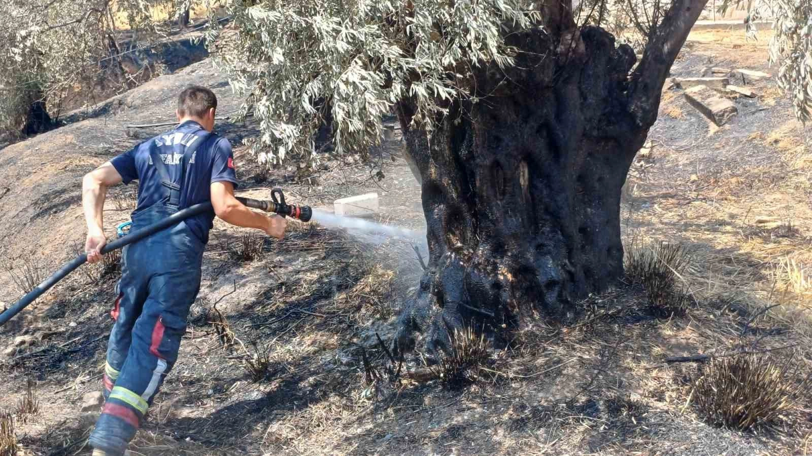 Aydın’ın Efeler ilçesi Aytepe mevkiinde bir gün önce meydana gelen orman yangını sonrasında bugün yeniden gelen yangın ihbarı ekipleri harekete geçirdi. Bölgede bulunan zeytin ağaçları için için yanarken, hızla müdahale eden itfaiye ekipleri bölgede soğutma çalışması gerçekleştiriyor.Yangın, Efeler ilçesi Zafer Mahallesi Aytepe mevkiinde meydana geldi. Edinilen bilgiye göre 21 Temmuz Pazar günü meydana gelen ve yaklaşık 2 saatlik çabanın ardından söndürülen yangın bölgesindeki zeytin ağaçlarından dumanların çıktığını gören vatandaşlar durumu 112 Acil Çağrı Merkezi’ne bildirdi. İhbar üzerine bölgeye Aydın Büyükşehir Belediyesi İtfaiye Daire Başkanlığı ekipleri sevk edildi. Kısa sürede olay yerine gelen ekipler, bölgede için için yanan zeytin ağaçlarına müdahale etti. Muhtemel bir yangının önüne geçen ekipler, bölgede yeniden soğutma çalışması gerçekleştiriyor.
