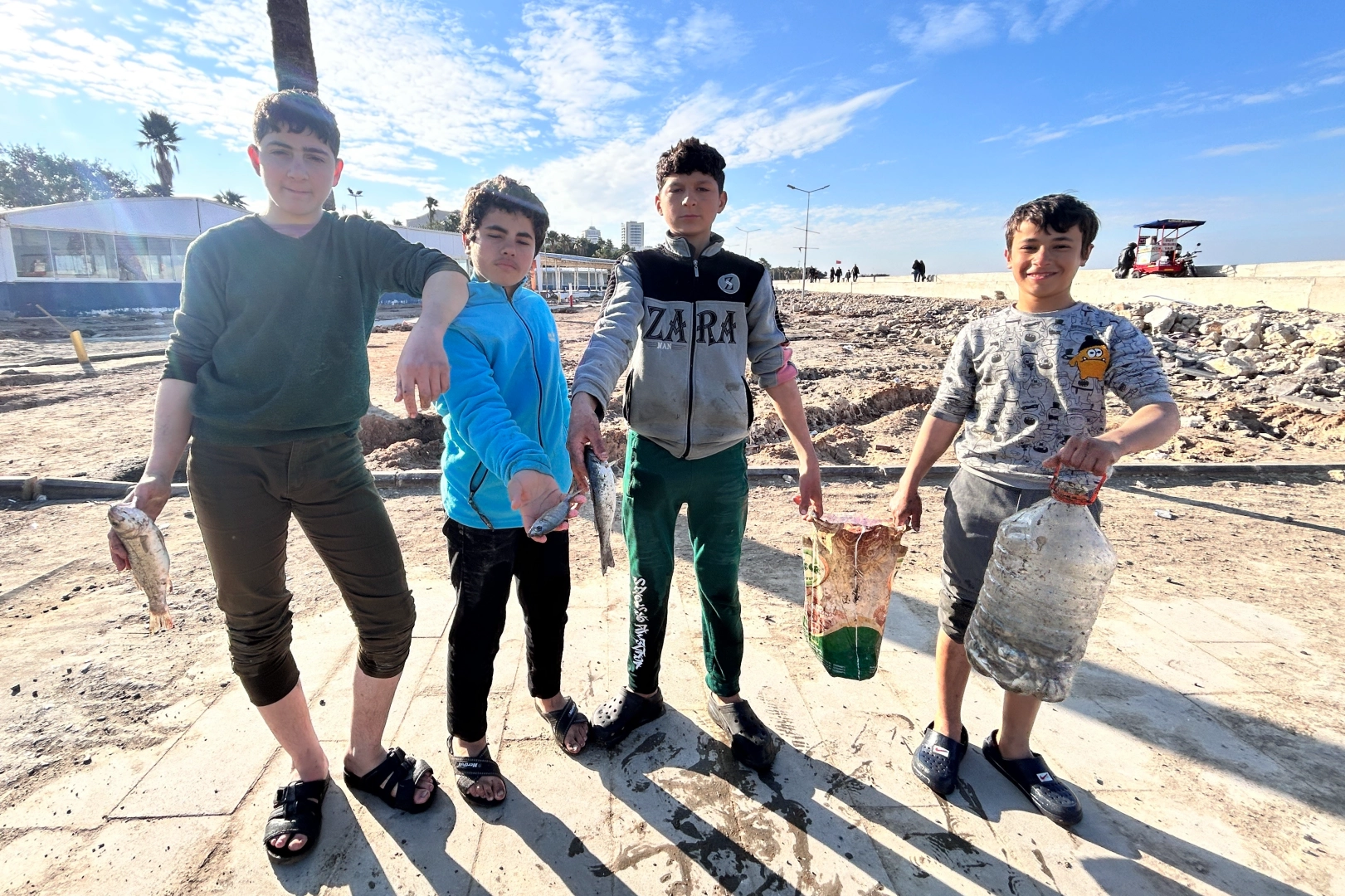 Nasıl balık tuttuğunu anlatan 15 yaşındaki Muhammed Yasin, “Biz bu perdeyi evden getirdik balık yakalamak için. Toplamda 3-4 kilogram balık yakaladık. Burası depremden önce taşmıştı bu balıklar o zaman gelmiş bu kanala ve akşam bu balıkları pişirip yiyeceğiz” dedi.