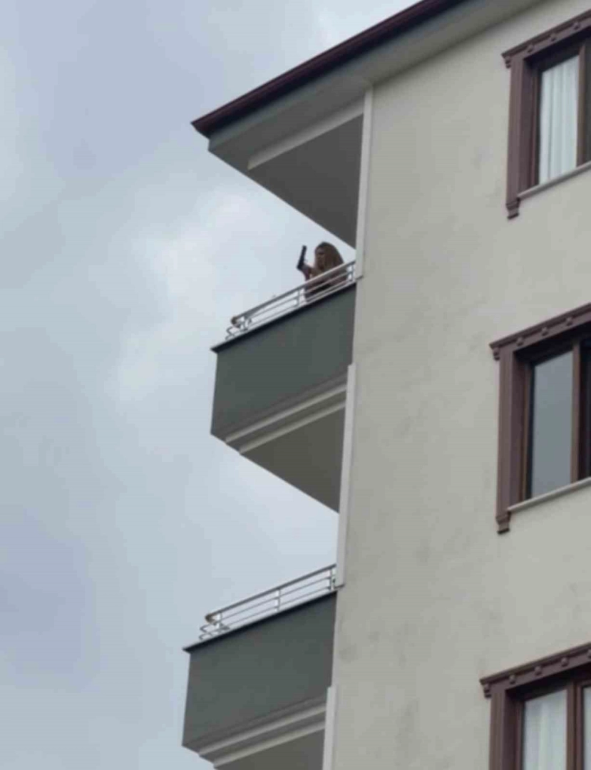 Iğdır’da bir kadın balkona çıkarak elindeki silahla rastgele ateş etmeye çalıştı. Polislerin müdahalesiyle kadının elindeki silah alındı.Olay, akşam saatlerinde Iğdır Vali Yolu mevkisinde meydana geldi. Genç bir kadın balkona çıkarak şarkılar söyleyip dans ederek elindeki silahla sağa sola ateş etmeye çalıştığı görüldü. Olayı gören çevredeki vatandaşlar durumu 112 Acil Çağrı Merkezine ihbar etti. Olay yerine çok sayıda polis ekipleri sevk edildi. Balkonda şarkılar söyleyip oynayan genç kadın elindeki silahı olaya müdahale etmeye gelen polislere doğrultarak defalarca tetiğe bastığı iddia edildi. Polislerin müdahalesi sonrası kadının elindeki silah alındı. Kadın karakola götürülürken silahın boş olduğu öğrenildi.