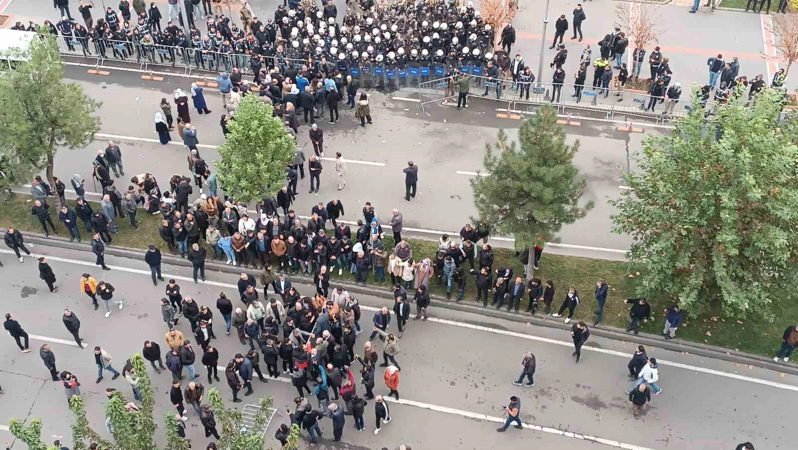 Batman Belediyesi önünde toplanan bir grubun içeri girmeye çalışıp polise taş atması sonucu yaşanan arbedede 9 gösterici gözaltına alındı.İçişleri Bakanlığı tarafından Batman Belediye Başkanı Gülistan Sönük’ün terörle iltisaklı olduğu gerekçesiyle hakkında kesinleşen hapis cezası ve yürütülen terör soruşturmaları kapsamında görevden alınmasının ardından belediye binası etrafında güvenlik önlemleri alındı. Belediye önünde bir araya gelen bir grup ise, bina etrafındaki bariyerleri devirerek içeri girmeye çalıştı. Uyarılara rağmen polise taş atan gruba müdahale edildi. Çıkan arbedede 9 gösterici gözaltına alındı. Gözaltına alınan göstericiler emniyete götürülürken, belediye binası etrafındaki güvenlik önlemleri sürüyor.Belediye Başkanı Sönük sabah saatlerinde görevden alındıBelediye Başkanı Gülistan Sönük, hakkında Batman 2. Ağır Ceza Mahkemesince yürütülen soruşturmada ’silahlı terör örgütüne üye’ olmak suçundan 6 yıl 3 ay hapis cezası alması, Batman Cumhuriyet Başsavcılığınca hakkında ’silahlı terör örgütü propagandası yapmak’ suçundan yürütülen soruşturmanın devam etmesi ve Batman Cumhuriyet Başsavcılığınca ’silahlı terör örgütüne üye olmak’ suçundan hakkında yürütülen soruşturmanın devam etmesi nedeniyle İçişleri Bakanlığınca görevden uzaklaştırılmıştı.