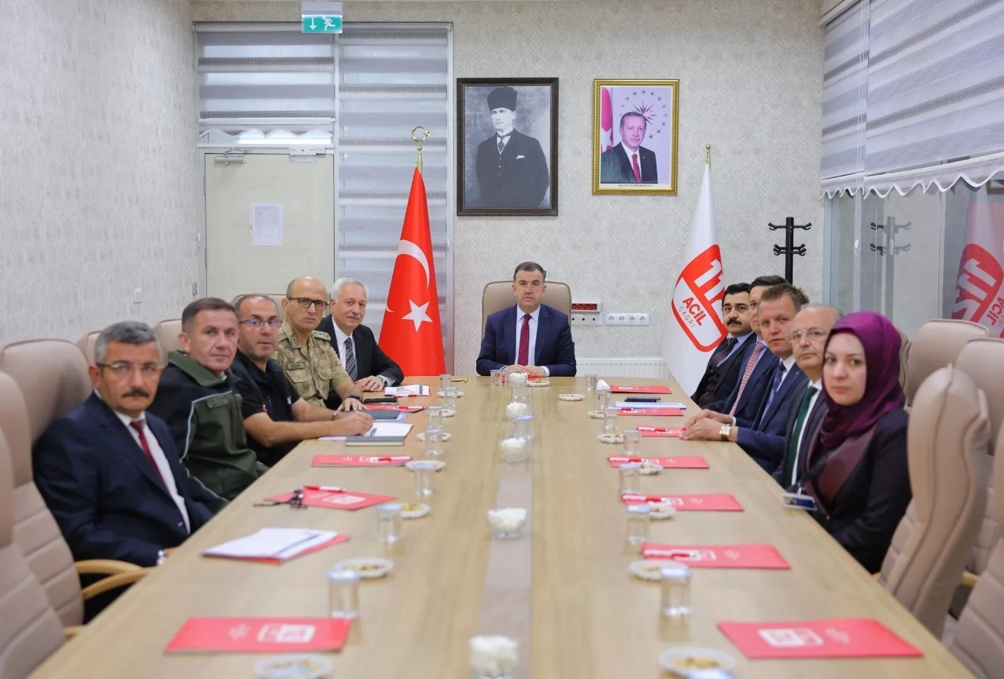 112 Acil Çağrı Merkezi İl Koordinasyon Kurulu Toplantısı Bayburt Valisi Mustafa Eldivan başkanlığında 112 Acil Çağrı Merkezi toplantı salonunda gerçekleştirildi.112 Acil Çağrı Merkezi Müdürlüğünün faaliyetlerinin gözden geçirildiği toplantıda, yıllık istatistik ve diğer konular hakkında bilgiler verildi. Vali Eldivan, toplantı sonunda büyük sorumluluk altında çalışan personele teşekkür ederek merkezde hızlı, etkili ve koordineli bir şekilde hareket etmenin hayati önem taşıdığını vurguladı. Vali Eldivan daha sonra Komuta Merkezini İl Jandarma Komutanı Albay Fatih Aslan ve İl Emniyet Müdürü Barış Erkol ile gezerek, personelle bir süre sohbet etti.