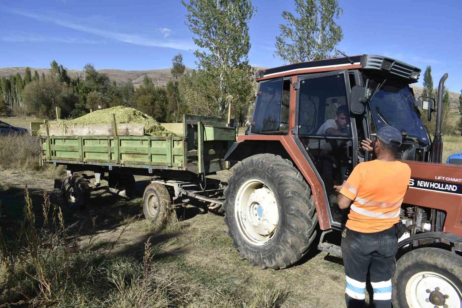 Bayburt’ta yaklaşık 5 bin dekar alanda üretimi yapılan silajlık mısırın hasadına başlandı.Hayvancılıkta kaba yem kaynağı olarak önemli bir yere sahip olan silajlık mısırın ekim alanları her geçen gün artmaya devam ederken, uygun bakım ve sulama koşullarını sağlayan üreticiler, mısırdan dekar başına yaklaşık 6 ton verim bekliyor. Akşar Köyündeki silajlık mısırın hasat çalışmalarını takip eden İl Tarım ve Orman Müdürü Selami Ersen, hayvan yeminde önemli bir yere sahip olan silajlık mısır ekim alanlarının son yıllarda artan sulama imkanlarıyla daha da önem kazanacağına vurgu yaptı.Ersen, Karadeniz bölgesinden silajlık mısır için önemli miktarda talep olduğunu ve bu talebin çok büyük çoğunluğunun Bayburt’tan karşılandığını belirtti. Üreticilerle bir süre sohbet eden Ersen, çiftçilerin taleplerini de dinledi.