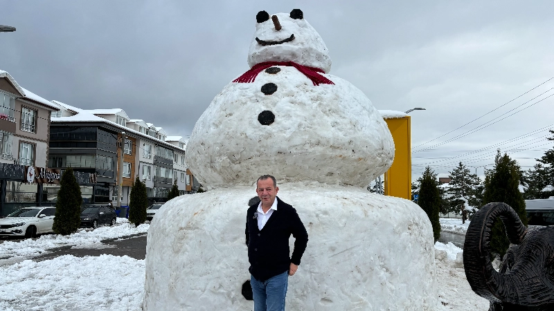 Bolu Belediyesi Park ve Bahçeler Müdürlüğü ekipleri, dün gün boyu okul bahçelerindeki karları kamyonlarla topladı. Toplanan 7 kamyon dolusu kar, Kuvayi Milliye Bulvarı'na taşındı. Burada Park ve Bahçeler Müdürlüğü ekipleri tarafından sıkıştırılan kar yığınlarından dev bir kardan adam yapıldı. Yaklaşık 5 metre yüksekliğindeki kardan adam, vatandaşların ilgisini topladı. Yapılan sıkıştırma işlemi sayesinde kardan adamın günlerce erimeden kalacağı öğrenildi.
