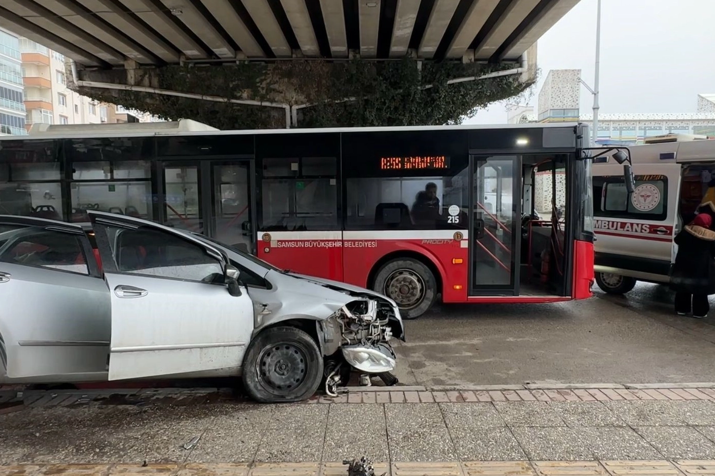 Kaza, Canik ilçesi Atatürk Bulvarı Mavi Işıklar Eğitim, Dinlenme ve Rehabilitasyon Merkezi mevkisinde meydana geldi. Edinilen bilgiye göre, bulvar üzerindeki kavşaktan dönüş yapmak isteyen Serdar Dündar (43) idaresindeki 60 RF 515 plakalı Fiat otomobil, o sırada dönüş yapan 55 BBB 02 plakalı belediye otobüsüne çarpmamak için manevra yaptı. Direksiyon hakimiyetini kaybeden sürücü refüje çıkarak durabildi. Kazada otomobilde yolcu konumunda bulunan Saliha Pehlivan (39) yaralandı. Yaralı olay yerine gelen ambulansla Samsun Eğitim ve Araştırma Hastanesi’ne kaldırıldı.