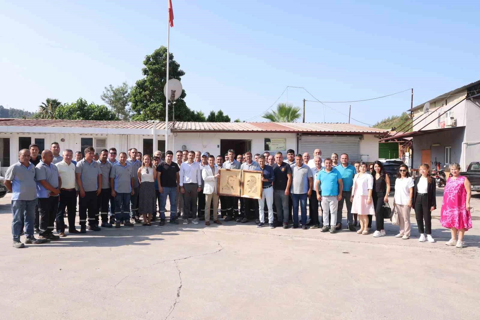 Marmaris Belediyesi Destek Hizmetleri Müdürlüğü personeli kahvaltıda buluştukları Marmaris Belediye Başkanı Acar Ünlü’ye Atatürk Portresi hediye etti.Marmaris Belediye Başkanı Acar Ünlü, Belediye’nin dış birimlerde çalışan personeliyle kahvaltıda buluşmayı sürdürüyor. Başkan Ünlü, Temizlik ve Fen İşleri Müdürlüğü’nün ardından bugün de Destek Hizmetleri Müdürlüğü’nde görevli çalışanlarla Makine Araç Parkı’nda düzenlenen kahvaltıda bir araya geldi. Etkinliğe bu kez birim müdürleri de katıldı. Keyifli bir ortamda geçen kahvaltıda Başkan Ünlü Destek personeliyle sohbet etti, çalışanların sahada yaşadıklarını ve taleplerini dinledi. Başkan Ünlü’ye müdürlükte görevli Ramazan Süzgeç’in ahşap üstü yakma tekniğiyle yaptığı Atatürk portresi hediye edilirken, Belediye Başkanı Ünlü de Marmaris’i daha güzel ve estetik kılmak için büyük bir gayretle çalışan müdürlük personeline teşekkür ederek; özveriyle yürüttükleri çalışmalarında kolaylıklar diledi.