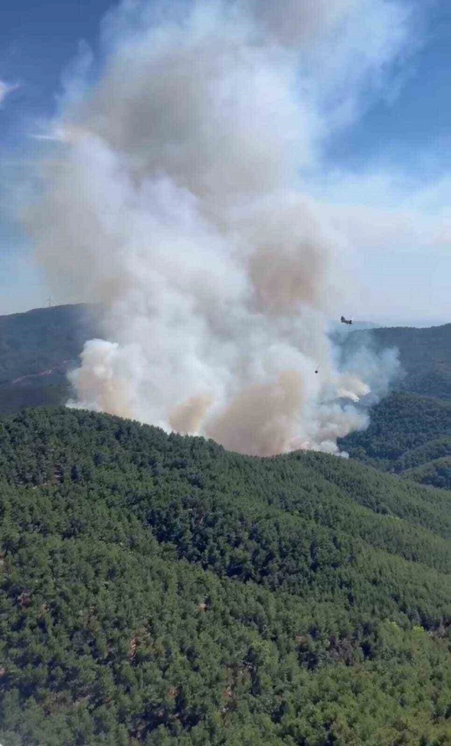 İzmir’in Bergama ilçesinde çıkan orman yangınına havadan ve karadan müdahale ediliyor.Yangın, saat 15.16’da Kapukaya Mahallesi’ndeki ormanlık alanda meydana geldi. Bölgeden dumanların yükseldiğini gören vatandaşlar durumu 112 Acil Çağrı Merkezine bildirdi. İhbar üzerine adrese intikal eden İzmir Orman Bölge Müdürlüğüne bağlı; 8 uçak, 19 helikopter, 50 arazöz, 10 su ikmal aracı ve 4 dozer ile alevlere müdahale başladı. Ekiplerin alevleri kontrol altına alma çalışmalarının sürdüğü öğrenildi.