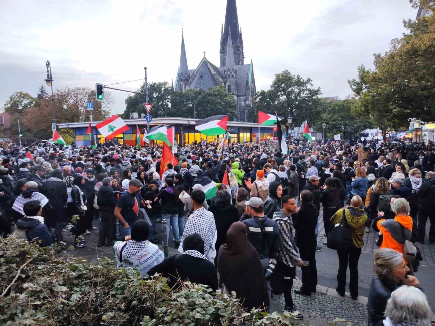 Almanya’nın başkenti Berlin’de İsrail saldırılarının birinci yıldönümünde Filistin’e destek gösterisine polis müdahale etti.İsrail saldırılarının birinci yıldönümünde Almanya’nın başkenti Berlin’de Filistin’e destek gösterisi düzenlendi. Kreuzberg’teki Südstern Metrosu’nda toplanan yaklaşık bin 500 gösterici, İsrail saldırılarının bir an önce sonlandırılmasını talep etti. Ellerinde Filistin bayrakları taşıyan göstericiler, "İsrail terör devleti", "Almanya finanse ediyor, İsrail bombalıyor" ve "Filistin’e özgürlük" sloganları attı. Yasaklı slogan atılmaması ve pankartlar taşınmaması konusunda uyarıda bulunan polis, göstericilere müdahalede bulundu. Aralıklarla gösterinin sona erdirilmesi çağrısında bulunan polis, gösterinin sonlandırılmaması nedeniyle göstericilere müdahale etti. Polis, çok sayıda göstericiyi gözaltına aldı.