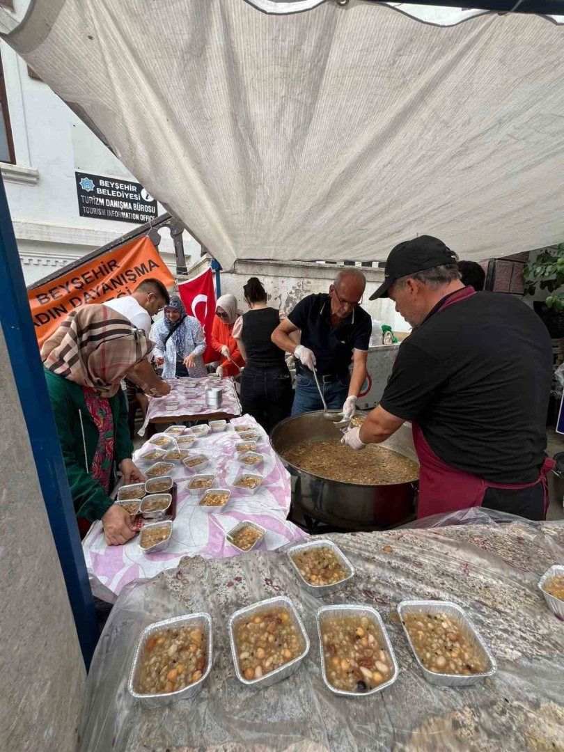 Konya’nın Beyşehir ilçesinde, Beyşehir Kadın Dayanışma Derneği tarafından vatandaşlara aşure ikramında bulunuldu.Beyşehir Kadın Dayanışma Derneği önünde düzenlenen aşure günü etkinliğinde vatandaşlara tarafından yapılan dua sonrasında dernek yönetimi tarafından kazanlarda pişirtilen aşure ikram edildi. Kurulan alanda dağıtılan aşurelere vatandaşlar yoğun ilgi gösterdi. Vatandaşlar dağıtılan aşureden tadabilmek için sıraya girdi. Beyşehir Kadın Dayanışma Derneği Başkanı Saniye Göker, muharrem ayı dolayısıyla dernek olarak geleneksel hale getirdikleri ve bu yıl ikincisini düzenledikleri aşure etkinliğine maddi manevi destek veren, katkı sunan hayırsever vatandaşlara ve emeği geçen herkese teşekkür etti. Göker, etkinlik çerçevesinde 7 bin kişiye aşure dağıtımı yaptıklarını belirterek, “Geçtiğimiz yıl yaptığımız etkinlikte bin 500 kişilik aşure dağıtımımız olmuştu. Bu yıl bu miktarı hayırseverlerimizin de desteğiyle 7 bin kişiye çıkardık. Hayırseverlerimizin hayırlarını Allah kabul etsin inşallah” şeklinde konuştu.