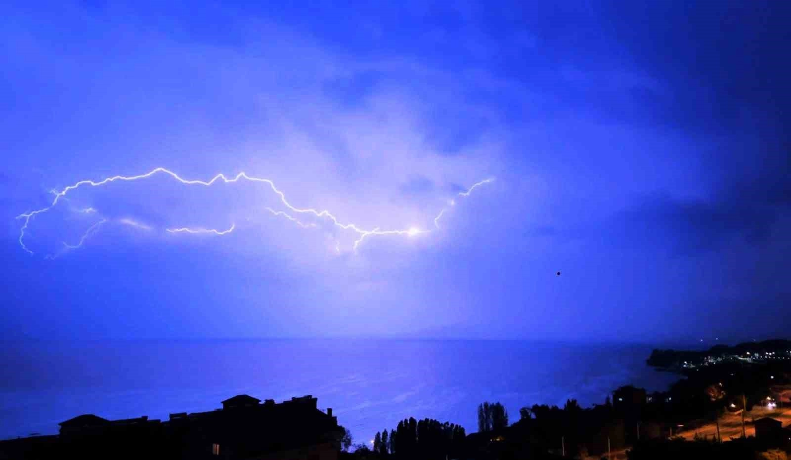 Bitlis’in Ahlat ilçesinde etkili olan gök gürültülü sağanak yağışla birlikte Van Gölü’ne düşen şimşekler adeta geceyi gündüze çevirdi.Meteorolojinin uyarısı sonrası Bitlis il merkezi ve ilçelerinde gün boyunca gök gürültülü sağanak yağış etkili oldu. Gece saatlerinde yağmur ile birlikte Van Gölü üzerinde art arda çakan şimşekler geceyi gündüze çevirdi. Şimşek görüntüleri hem korkuttu hem kartpostallık görüntüsüyle hayran bıraktı. Van Gölü kıyı şeridinde yaşayan Ahlatlı doğa fotoğrafçısı Bülent Akarsu, Van Gölü’ne düşen ve geceyi gündüze çeviren şimşeklerin görüntüsünü kaydetti. Van Gölü’ne düşen şimşekler görsel şölen oluşturdu. Öte yandan meteorolojiden yapılan açıklamaya göre gök gürültülü sağanak yağışların önümüzdeki birkaç gün daha devam etmesi bekleniyor.