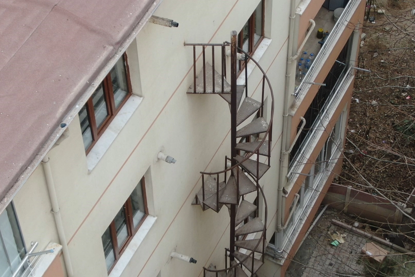 Üniversite Mahallesi Efe Sokak’ta bulunan 5 katlı binanın yangın merdiveni görenleri hayrete düşürdü. Binanın dış cephesine monte edilen yangın merdivenine giriş ve çıkışın olmadığı görüldü. Duvarda adeta süs gibi duran merdiven, görenlerin tepkisini çekti. Bolu’daki kayak merkezinde hayatını kaybedenlere Allah’tan rahmet dileyen Baki Cengiz adlı vatandaş, ''Geriye kalanlara da başsağlığı diliyorum. Bazı ihmalkarlıklar var. Devletin bunları göz önünde bulundurması lazım. Elazığ’daki bir binada bulunan yangın merdivenini görünce çok şaşırdım. Böyle bir merdivenin olması imkansız gibi bir şey. Bu merdiveni sanki çizgi filmlerde görmüş gibiyim. Ne girişi ne de çıkışı var. Binaya girmek istesen binaya giremiyorsun. Aşağı baksan düşeceksin, bir şey yok. Nereye gideceksin, başka bir alternatifin yok. Bildiğiniz sade, düz, beton yığınlarının içerisinde demir direklerden başka bir şey ifade etmiyor” dedi.
