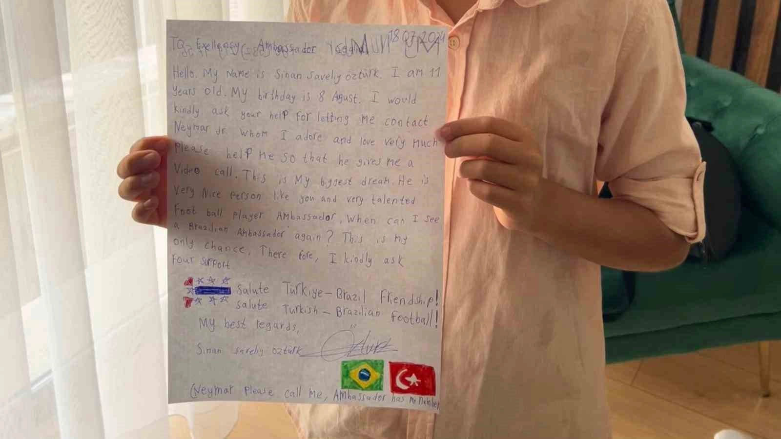 Brezilya’nın Ankara Büyükelçisi Carlos Martins Ceglia, küçük Neymar hayranını kabul etti.Brezilya’nın Ankara Büyükelçisi Carlos Martins Ceglia, Brezilyalı futbolcu Neymar’ın hayranı olan 11 yaşındaki Sinan Saveliy Öztürk’ün Neymar’la görüşmek için yardım istediği mektubunu kabul etti. Öztürk, Neymar’ı çok sevdiğini ve onunla görüntülü konuşmak istediğini belirttiği mektubunda, Brezilyalı Büyükelçi Ceglia’dan yardım talebinde bulundu. Mektubunu, “Yaşasın Türkiye-Brezilya dostluğu, yaşasın Türkiye-Brezilya futbolu” diye bitiren Öztürk’e Büyükelçi Ceglia, “Neymar’a ulaşmak için elimden geleni yapacağım” diye yanıt verdi.Ayrıca Büyükelçi Ceglia, görüşmenin sonunda Öztürk’e, “1930’dan 2018’e Dünya Kupasında Brezilya Tarihi” isimli kitabı hediye etti.