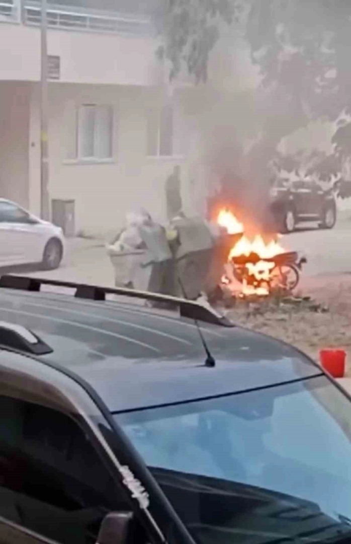Bursa’da bir motosiklet park halindeyken alev aldı. Kısa sürede büyüyen alevler iki tekerlekli aracı küle çevirdi.Olay, Gürsu ilçesinde meydana geldi. İddiaya göre sürücüsünün park halinde bıraktığı motosiklet, çöp konteynırlarının yanında bir anda alev aldı. Alevlerin hızla sardığı motosiklet küle dönerken, çevredekilerin müdahalesi yetersiz oldu. O anlar ise kameraya saniye saniye yansıdı.