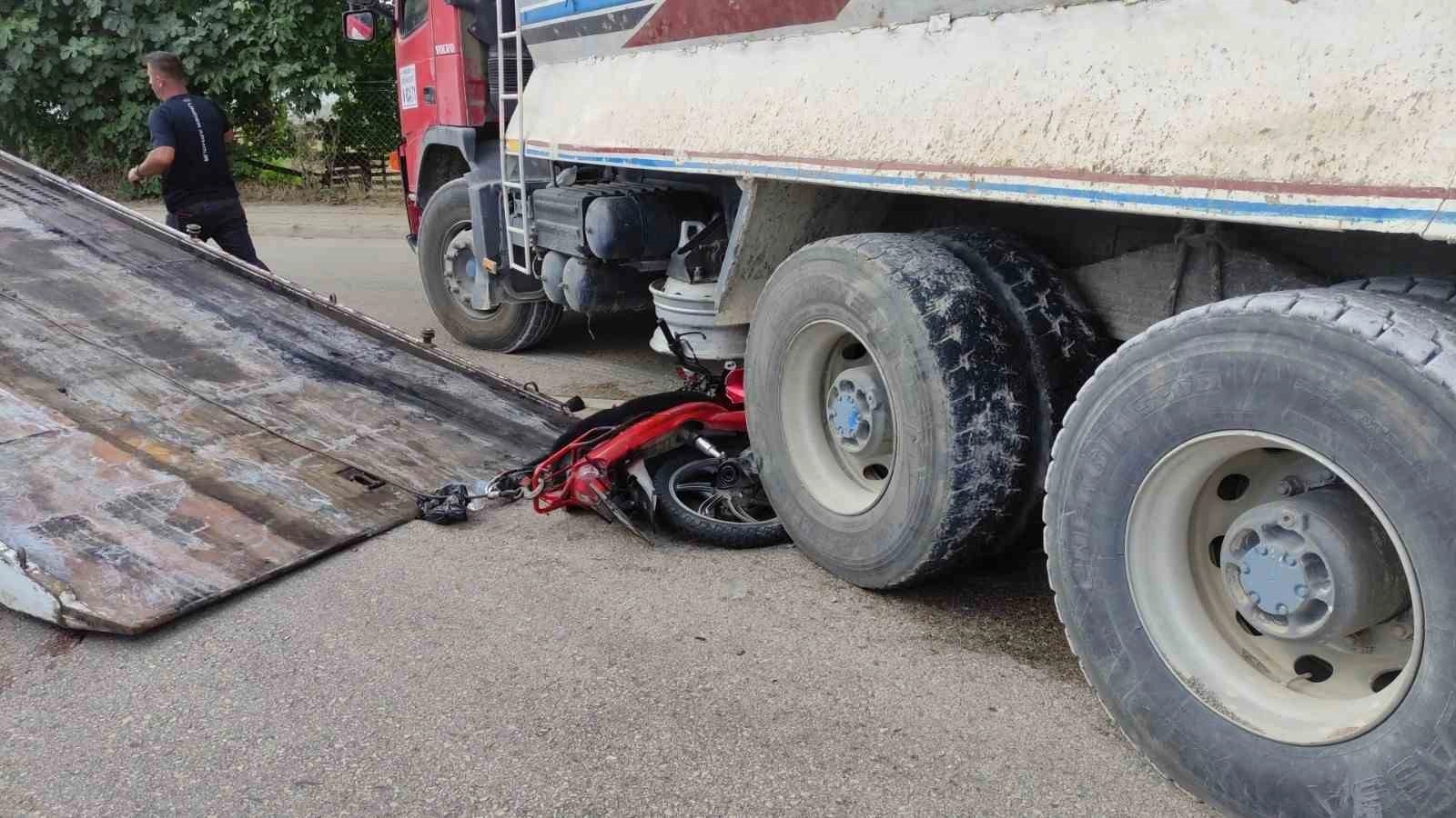 Bursa’nın Orhangazi ilçesinde İznik yolu üzerinde bir motosikletin kamyonun altına girdiği kazada 1 kişi yaralandı.Kaza, saat 16.30 sıralarında Orhangazi’de İznik yolu üzerinde meydana geldi. Alınan bilgilere göre, Onur K. (30) idaresindeki 16 KFB 62 plakalı motosiklet İznik yolu üzerinde bir işyerinden ana yola çıkış yapmaya çalışan Kemal K. (65) idaresindeki 16 RCA 71 plakalı kamyona yandan çarptı.Motosiklet lastiğin altına sıkıştıKazada kayarak kamyonun altına giren motosiklet araç lastiğinin altına sıkışırken, motosiklet sürücüsü yaralandı. İhbar üzerine olay yerine polis ve sağlık ekipleri sevk edildi. ilk müdahalesi kaza yerinde yapılan motosiklet sürücüsü ambulansla Orhangazi Devlet Hastanesine kaldırılarak tedavi altına alındı. Polis kaza ile ilgili inceleme başlattı.