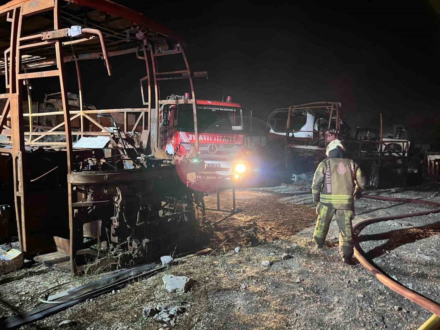 İstanbul Büyükçekmece’de, hurda otobüslerin bulunduğu alanda yangın çıktı. Kilometrelerce uzaklıktan görünen yangın otluk alana sirayet etmeden söndürüldü.Yangın, akşam saatlerinde Büyükçekmece Kamiloba Mahallesi 77. Sokakta hurda otobüslerin bulunduğu alanda çıktı. Edinilen bilgiye göre, hurdalık alanda henüz bilinmeyen nedenle çıkan yangın kısa sürede otobüslere sıçradı. İhbar üzerine olay yerine sağlık, polis ve çok sayıda itfaiye ekibi sevk edildi. Olay yerine gelen polis çevre güvenliğini sağlarken, itfaiye ekipleri yangına müdahale etti. Yangın nedeniyle iki otobüsün kullanılamaz hale gelirken yangın, otluk alana yayılmadan söndürüldü.