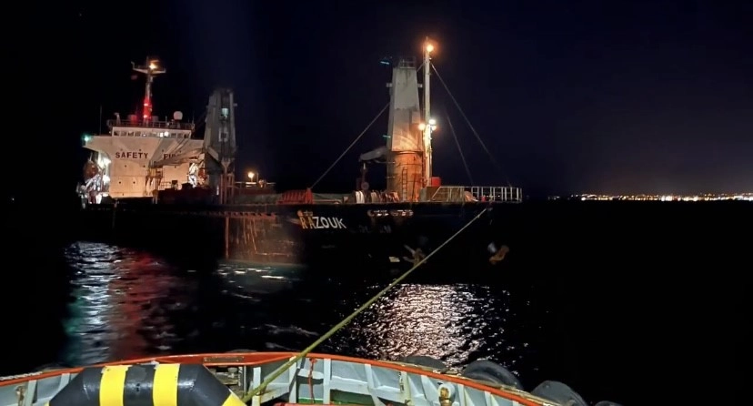 Çanakkale Boğazı’ndan geçen 100 metre boyundaki ‘RAZOUK’ isimli kuru yük gemisi makine arızası yaptı. Gemi, kılavuz kaptan ve römorkör refakatinde Karanlık Liman demir sahasına götürülerek demirletildi.Aliağa’dan Bulgaristan’a giden 100 metre boyundaki ‘RAZOUK’ isimli kuru yük gemisi Çanakkale Boğazı’ndan geçişi sırasında Karanlık Liman önlerinde makine arızası yaptı. Gemi kaptanının durumu telsizle Çanakkale Boğazı Gemi Trafik Hizmetleri Müdürlüğüne bildirmesi üzerine bölgeye Kıyı Emniyeti Genel Müdürlüğüne (KEGM) bağlı ‘Kurtarma-3’ römorkörü sevk edildi. Boğazı geçecek diğer gemiler arıza hakkında bilgilendirildi.Kuru yük gemisi, kılavuz kaptan ve römorkör refakatinde Karanlık Liman demir sahasına götürülerek demirletildi.