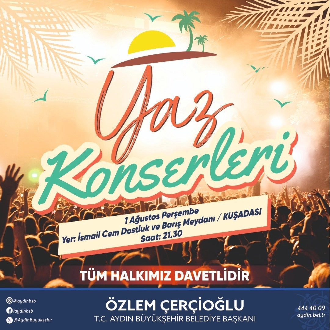 Aydın Büyükşehir Belediyesi Konservatuarı tarafından kentin farklı noktalarında düzenlenen ve geleneksel hale gelen ’Yaz Konserleri’ devam ediyor. Her yıl binlerce vatandaşın katılım sağladığı konserlerin yeni durağı Kuşadası olacak.Büyükşehir Belediyesi Konservatuarı bugün Kuşadası ilçesi İsmail Cem Dostluk ve Barış Meydanı’nda vatandaşlar ile buluşacak. Saat 21.30’da başlayacak olan konserde sevilen şarkılar Kuşadalılar için seslendirilecek. Tüm vatandaşları konsere davet eden Aydın Büyükşehir Belediye Başkanı Özlem Çerçioğlu, “Kentimizin farklı noktalarında kültür ve sanat aktivitelerimize devam ediyoruz. Büyükşehir Belediyesi Konservatuarımız sevilen eserleri bugün Kuşadası’nda seslendirecek. Tüm vatandaşlarımızı etkinliğimize davet ediyorum” ifadelerini kullandı.