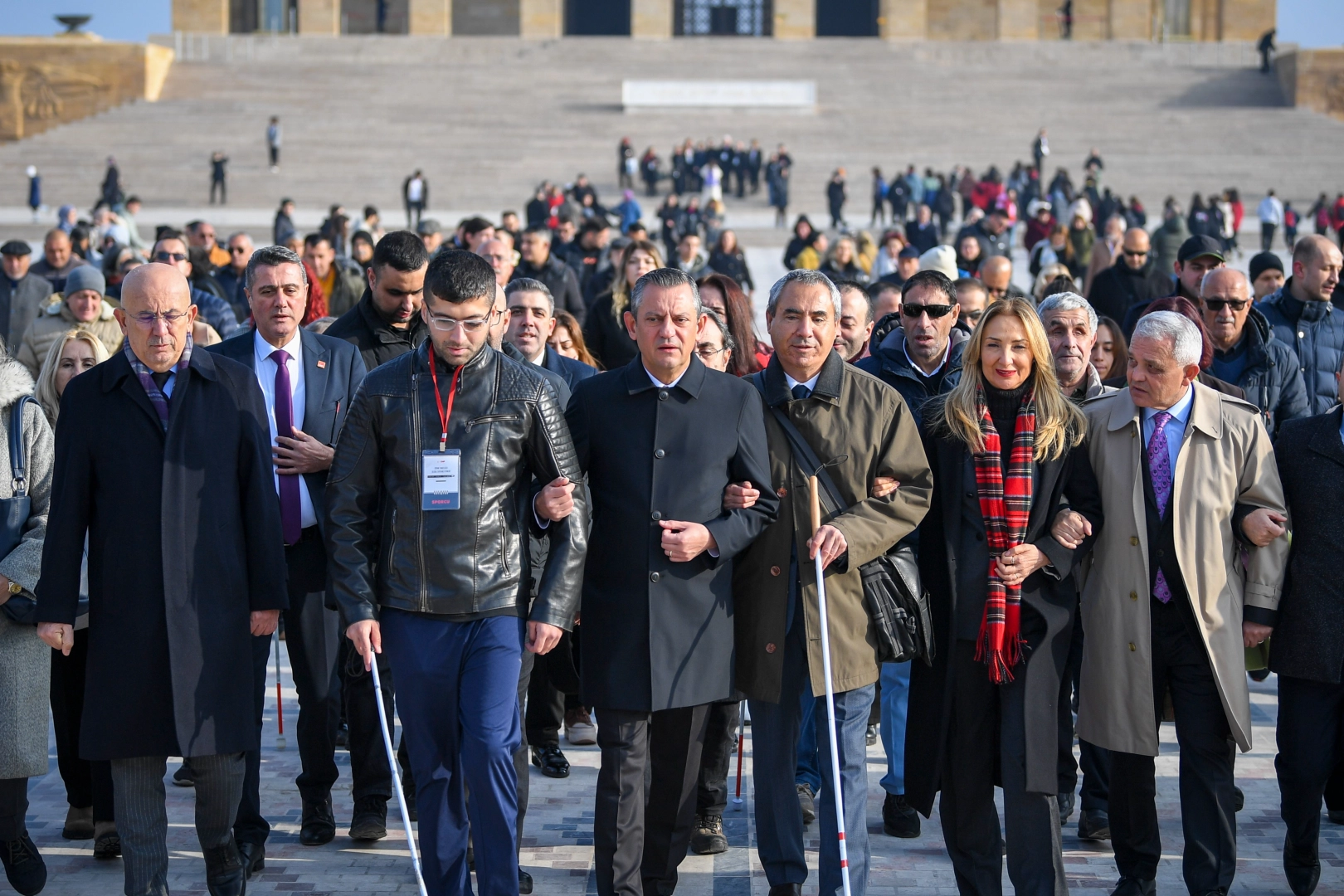 CHP Genel Başkanı Özel ile engellilerden oluşan beraberindeki heyet, Atatürk'ün mozolesine geldi. Mozoleye çelengin bırakılmasının ardından saygı duruşunda bulunuldu.