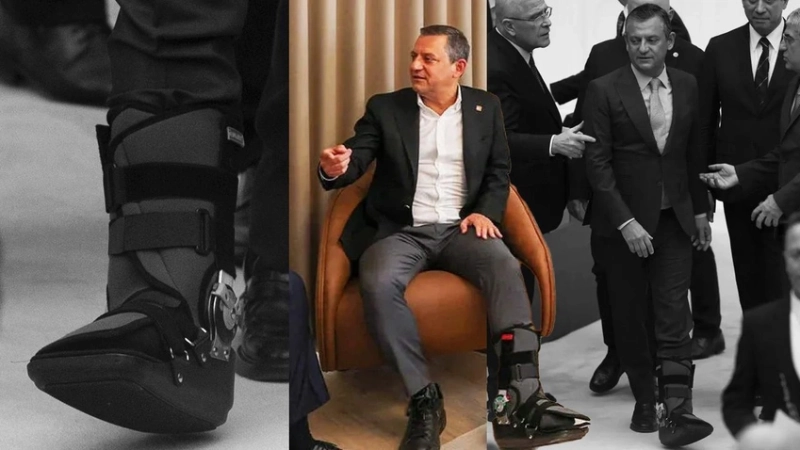 CHP Genel Başkanı Özgür Özel'in geçen hafta evinde geçirdiği kaza sonucunda ayağında kırıklar meydana gelmişti.