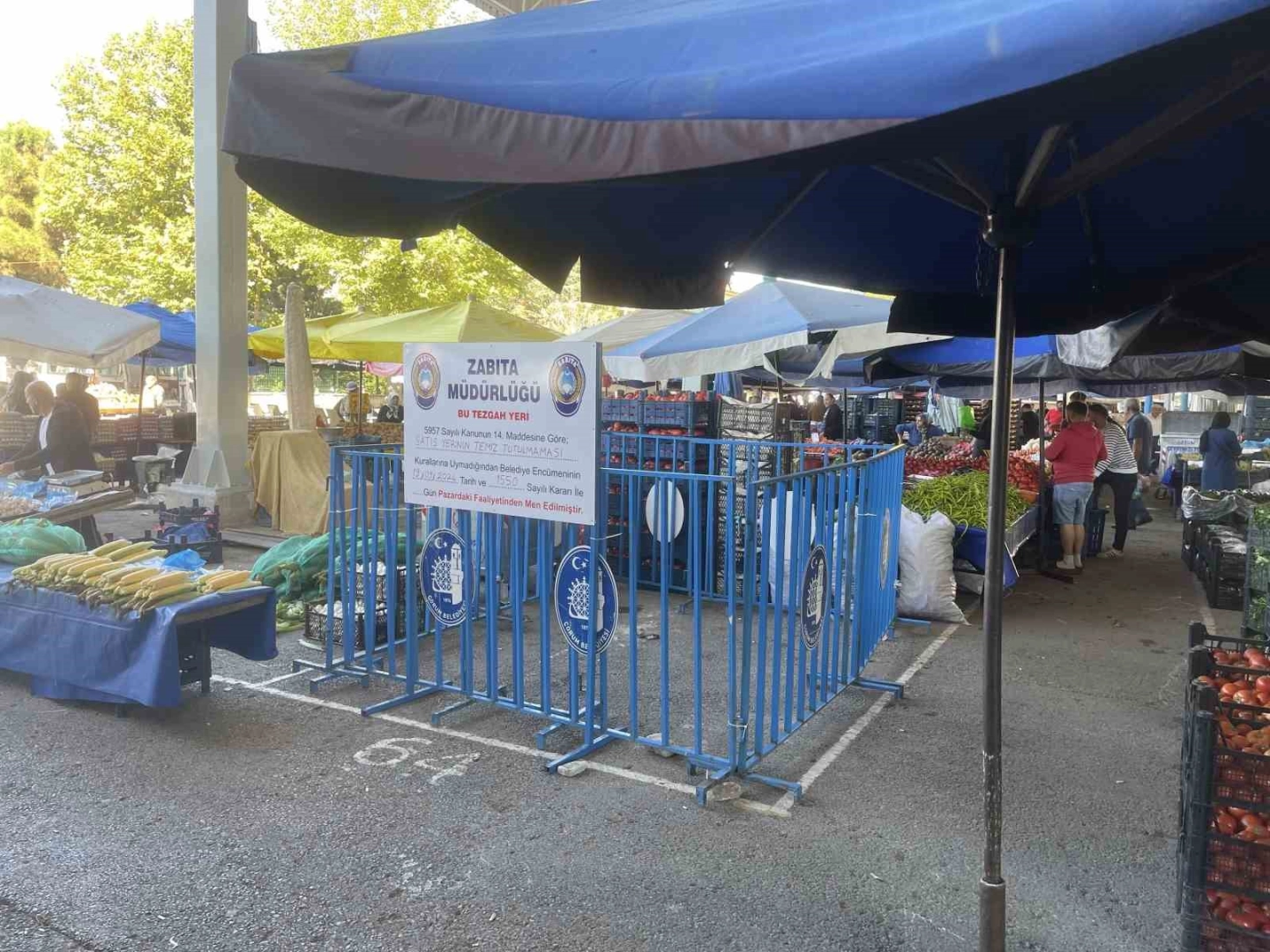 Çorum’da şehir genelindeki marketlerin yanı sıra semt pazarlarında da denetimlerini sürdüren zabıta ekipleri kurallara uymayan pazar esnafına tezgah kapatma cezası verdi.Semt pazarlarında fiyat kontrolünün yanı sıra tezgahlardaki ürün ve hijyen konularında da denetimler yapan Zabıta Müdürlüğü ekipleri hijyen kurallarına uymadığı için daha önce 2 kez cezai işlem uyguladıkları pazar esnafına 1 hafta tezgah kapatma cezası verdi.Sabah saatlerinde Cuma Pazarı’nda denetim yapan zabıta ekipleri bir esnafın hijyen kurallarına uymadığını tespit etti. 2024 yılı içerisinde 2 kez daha aynı kuralı ihlalden dolayı idari para cezası uygulanan esnafa Belediye Encümen kararı gereği 1 hafta tezgah kapatma cezası verildi.