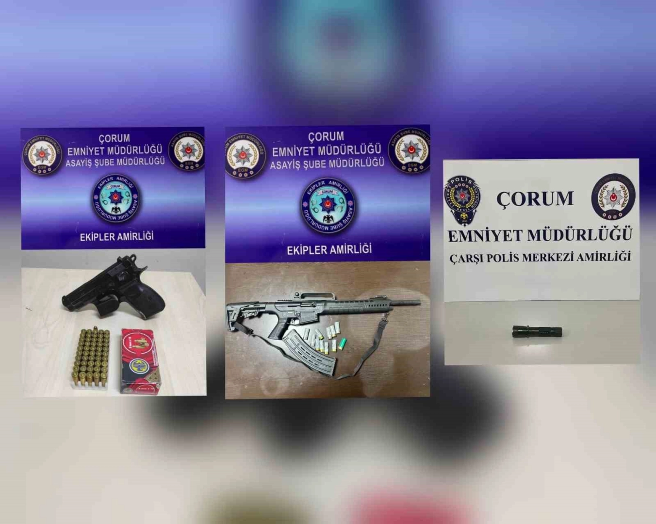 Çorum’da yapılan şok uygulamalarda haklarında arama kararı bulunan 6 kişi yakalandı. Uygulamalar sonucunda çok sayıda silah ve uyuşturucu madde ele geçirildi.İl Emniyet Müdürlüğü asayiş ve güvenliğin sağlanmasına yönelik çalışmaları devam ediyor. Asayiş Şube Müdürlüğü ekiplerince 05-12 Temmuz tarihlerinde yapılan şok uygulamalar ile şüphe ve ihbar üzerine yapılan çalışmalar neticesinde, 2 bin 513 şahsın GBT kontrolü yapıldı.Yapılan uygulamalar sırasında haklarında çeşitli mahkemeler tarafından arama kararı bulunan 6 şahıs yakalanırken, 5 ruhsatsız tabanca, 4 tüfek, 4 kuru sıkı tabanca, 1 adet havalı tüfek, 7 kesici ve delici alet olmak üzere toplam 21 adet silah, 216 adet fişek, 9 adet şarjör, 70 adet sentetik ecza, 2 adet extacy, 37,56 gram bonzai, 2,3 gram metamfetamin ve 1 adet cep telefonu ele geçirildi.Asayiş Şube Müdürlüğüne bağlı birimlerce yapılan denetimlerde 49 umuma açık mekan, 23 kahvehane/kıraathane, 15 kafe, 22 çay ocağı, 9 oyun salonu ve 11 otopark kontrol edilirken, trafik ekipleri tarafından kontrol edilen bin 118 araçtan 12 araca 219 bin 265 TL idari para cezası uygulandı. Teknik noksanları bulunan iki araç ise trafikten men edildi.