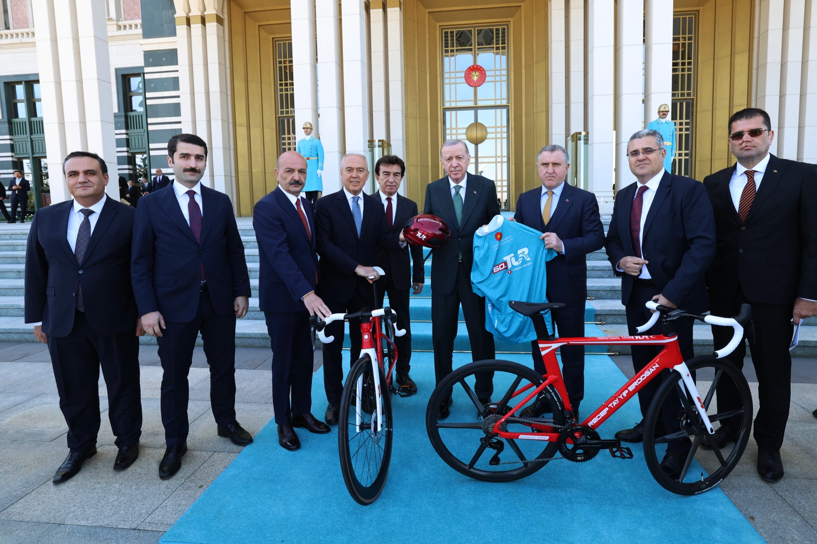 Cumhurbaşkanı Recep Tayyip Erdoğan, 27 Nisan-4 Mayıs tarihlerinde düzenlenecek "60. Cumhurbaşkanlığı Türkiye Bisiklet Turu"nun tanıtımı dolayısıyla Gençlik ve Spor Bakanı Osman Aşkın Bak, Türkiye Bisiklet Federasyonu Başkanı Emin Müftüoğlu, Federasyon yönetimi ve millî sporculardan oluşan heyeti kabul etti.