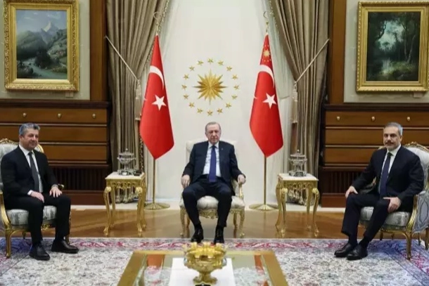 Cumhurbaşkanı Erdoğan, Cumhurbaşkanlığı Külliyesi'nde Irak Kürt Bölgesel Yönetimi (IKBY) Başbakanı Mesrur Barzani'yi kabul etti. IKBY Başbakanı Mesrur Barzani saat 12.00'de Dışişleri Bakanı Hakan Fidan ile bir araya geldi.