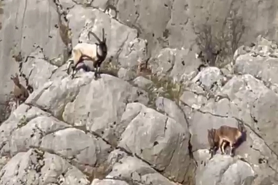Adıyaman’ın Sincik ilçe girişinde yoldan geçen vatandaşlar Boğaz mevkiinde kayalıklarda dağ keçisi olduğunu fark etti. Vatandaşlar, kayalıklara tırmanan dağ keçilerini cep telefonlarıyla görüntüledi. Bir süre etrafta dolanan dağ keçileri daha sonra gözden kayboldu.