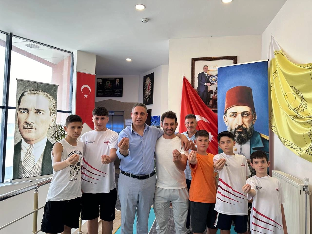 İstanbul’da dereceye girerek Türkiye Şampiyonası’na katılmaya hak kazanan güreşçiler, Osmanlı Ocakları ve Ocak Partisi Genel Başkanı Kadir Canpolat’ı ziyaret etti.Türkiye Güreş Federasyonu tarafından İstanbul’da düzenlenen güreş müsabakasında dereceye girerek Türkiye Şampiyonası’na katılmaya hak kazanan güreşçiler, Ankara’da kendilerine konaklama imkanı sağlayan Osmanlı Ocakları ve Ocak Partisi Genel Başkanı Kadir Canpolat’a teşekkür ziyaretinde bulundu. Canpolat’ı makamında ziyaret eden Antrenör Tarık Özdemir ve güreşçilerden İstanbul il 1.’si Muhammed Sabri Korkmaz, İstanbul il 2.’si Saad Vakkas Delibayır, İstanbul il 2.’si Muhammet Burak Arslan, İstanbul il 3.’sü Atanur Doğan Kalın ve İstanbul il 3.’sü Yusuf Emin Hafo, çalışmaları hakkında bilgiler verdi.Canpolat, Serbest Güreş Türkiye Şampiyonası güreşçilerinin elde ettiği başarılarla iftihar ettiğini söyledi. Güreşçilerin gösterdiği performanstan mutlu olduğunu dile getiren Canpolat, "Ata sporumuz güreşin yaşatılması ve gelecek nesillere aktarılması bizim için oldukça önemlidir. Bu başarıların devamı için biz de üzerimize düşeni yapacağız. Dereceye giren girmeyen tüm sporcularımızı kutlarım. Gençlerin gelecekte de büyük başarılara imza atacaklarına inanıyorum" dedi.Genç güreşçiler ile toplu fotoğraf çektiren Kadir Canpolat, güreşçilere spor hayatlarında başarılar diledi.