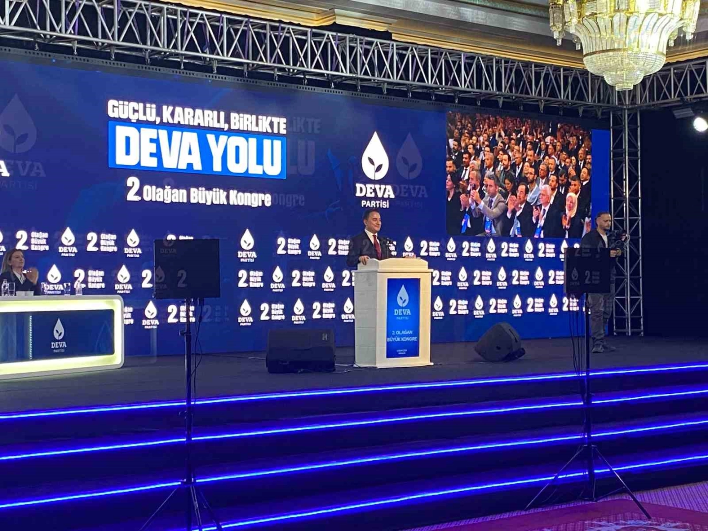 Ankara’da Demokrasi ve Atılım (DEVA) Partisi 2. Olağan Büyük Kongresi yapıldı.DEVA Partisi, 2. Olağan Büyük Kongresi’ni gerçekleştirdi. Saygı duruşunda bulunulması ve İstiklal Marşı’nın okunmasıyla başlayan kongre divan başkanının seçilmesiyle devam etti. Divan Kurulu Başkanlığına Halil Çanakçı’nın seçildiği kongrede, tek aday olan Ali Babacan genel başkan seçilirken, yardımcılar ve yönetim kurulu üyelerinin seçilmesi için sandığa gidildi."Siyasi partilerin büyük kongreleri bir muhasebedir"Kongre öncesinde bir konuşma yapan Babacan, “Dertliyiz, içimiz kan ağlıyor ama umudumuzu asla yitirmedik hiçbir zaman yitirmeyeceğiz. Bu güzel ve büyük ülke için tüm varlığımızı ortaya koyarak yoğun bir şekilde çalışmaya devam edeceğiz. Siyasi partilerin büyük kongreleri bir muhasebedir. Ülkenin geldiği durumun muhasebesidir. Partilerin yaptığı çalışmaların muhasebesidir. Büyük kongre aynı zamanda yeni bir heyecandır, yeni bir coşkudur. İşte bizim bu ikinci büyük kongremiz ve ikinci büyük kongremize giden süreçte de biraz önce değerli Divan Başkanımız İbrahim Bey’in de söylediği gibi çok ciddi bir özeleştiri ve iç değerlendirme sürecinden geçtik. Dış eleştirileri açık ve dış değerlendirmeleri de sonuna kadar kapıyı açan çok faydalı görüşmeler, değerlendirmeler, analizler, istişareler yaptık. Bütün bunların sonunda ve bütün bu çalışmaların sonucunda ise bizim şu anda yapmakta olduğumuz büyük kongremiz sadece partimiz için değil, Türkiye için yeni bir yolun başıdır” diye konuştu."Siyaseti iki kutuplu hale getirip Türkiye’de siyaset yapma zeminini yok etmek istiyorlar"Kongrenin ana mesajının ‘yeni bir yol’ olduğunu belirten Babacan, "Neden yeni bir yol? Çünkü bunlar siyaseti 2 kutuplu hale getirip Türkiye’de siyaset yapma zeminini yok etmek istiyorlar. Türkiye’yi siyaset siyasetsizleştirmek istiyorlar. Siyaseti iki kutba ayırıp milletimizi birbirine kırdırmak istiyorlar, birbirine düşürmek istiyorlar. Çünkü ancak bu şekilde destek bulabiliyorlar. Bunlar siyaset zeminini yok edip çok sesliliğin, çoğulculuğun önünü kapatmak, Türkiye’nin renkliliğini siyah ve beyaz olarak iki alana hapsetmek istiyorlar. Bu model kavga üretir, çatışma üretir, çoğulculuğu yok eder ve Türkiye’yi geriye götürür. Bu model ülkeyi kırılmalara götürür. Bu model ülkeyi umutsuzluğa götürür. Sadece iki tercih var ve ülkenin çıkışı yok. Şu anda gençlerimiz umutsuzsa işte bu iki kutuplu siyaset sebebiyle umutsuz, her iki tarafta da aradığını bulamadığı için umutsuz. Bütün araştırmalarda şu anda başta gençlerimiz olmak üzere vatandaşlarımız ‘Gönlüme göre bir siyasi parti bulamıyorum. Beni temsil edecek insanlar bulmakta güçlük çekiyorum’ diyorsa bu iki kutba hapsedilmiş siyasetin sonucu işte biz tam da bu sebeple diyoruz ki milletimizi iti tercihten birine zorlayan bu dayatmaya itirazımız var. Demokrasimize nefes aldıracak, milletimizin gönül rahatlığıyla destek vereceği güvenli yeni bir yola ihtiyaç var" ifadelerini kullandı.