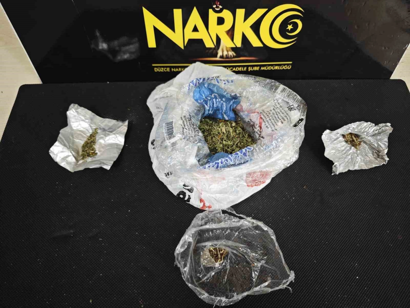DÜZCE(İHA) –Düzce’de polis ekipleri tarafından Konuralp bölgesinde uyuşturucu madde ticareti yapma suçu kapsamında yürütülen çalışmada gözaltına alınan 3 kişi tutuklandı, bir miktar uyuşturucu ele geçirildi.Düzce Cumhuriyet Başsavcılığı tarafından uyuşturucu madde ticareti yapmak suçu kapsamında yürütülen soruşturmada Narkotik Suçlarla Mücadele Şube Müdürlüğü ekiplerince Konuralp bölgesinde çalışma yapıldı. Uyuşturucu madde ticareti suçundan iki suç kaydı bulunan E.Ç. (21) bir suç kaydı bulunan E.N.Ü. (18), altı suç kaydı bulunan B.V.S. (22) ve uyuşturucu madde kullanmaktan üç suç kaydı bulunan F.A.Y. (19) hakkında işlem yapıldı. Şüphelilerin aracında ve üzerlerinde yapılan aramada ise 4 parça halinde 70 gram sentetik kannabinoid maddesi ele geçirildi. 3 şüpheli uyuşturucu madde ticareti yapmak suçundan sevk edildikleri adli makamlarca tutuklandılar.