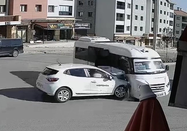 Elazığ’da yolcu minibüsü ile otomobilin çarpışması sonucu meydana gelen trafik kazasında 1 kişi yaralanırken, o anlar güvenlik kameralarına yansıdı.Kaza, dün Abdullahpaşa Mahallesi 274. Sokak’ta meydana geldi. Edinilen bilgiye göre, yolcu minibüsü ile otomobilin çarpıştığı kazada 1 kişi yaralandı. Kazayı gören diğer sürücülerin haber vermesi üzerine olay yerine ambulans ve polis ekipleri sevk edildi. Yaralı ambulansla Fırat Üniversitesi Hastanesine kaldırılarak tedavi altına alınırken, polis kazayla ilgili inceleme başlattı.Kaza anı ise bir iş yerinin güvenlik kameralarına saniye saniye yansıdı.