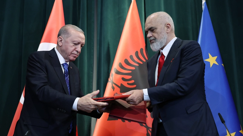 Cumhurbaşkanı Recep Tayyip Erdoğan, Tiran'da Arnavutluk Başkanı Edi Rama ile ortak basın toplantısı gerçekleştirdi. Cumhurbaşkanı Erdoğan, “Yüksek Düzeyli İşbirliği Konseyimizin ikinci toplantısı vesilesiyle dost ve kardeş ülke Arnavutluk'ta bulunmanın bahtiyarlığını yaşıyorum. Bildiğiniz üzere geçtiğimiz sene Arnavutluk'ta diplomatik ilişkilerimizin tesisinin 100'üncü yıl dönümünü idrak ettik. Tarihi bağlar ve kültürel yakınlıktan güç aldığımız Arnavutluk'la dostane ilişkilerimiz esasen bir asrın çok daha ötesine uzanıyor. Bu tarihi, beşeri ve kültürel temel üzerine 2021 yılında inşa ettiğimiz stratejik ortaklığımızı bugünkü istişarelerimizle daha da derinleştirdik. Geçtiğimiz Şubat ayında Ankara'da düzenlediğimiz ilk konsey toplantımızda belirlediğimiz iş birliği alanları üzerinde ayrıntılı görüş alışverişinde bulunduk. Ayrıca imzaladığımız ortak bildiri ile konseyimizin çeşitli alanlarda geliştirilmesi ve derinleştirilmesi yönündeki kararlılığımızı vurguladık. Tarım, yükseköğretim ile halkla ilişkiler ve iletişim alanlarında az önce imzaladığımız 3 anlaşmayla iş birliğimizi ilerletme irademizi teyit etmiş olduk” diye konuştu.