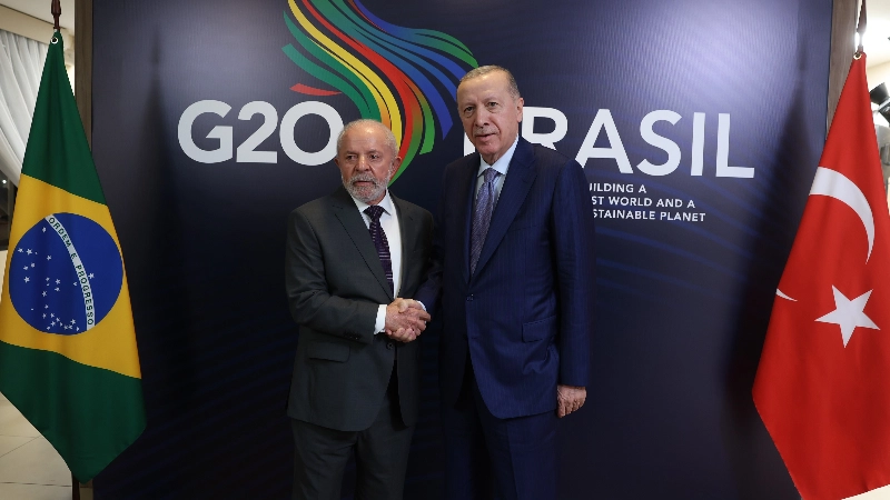 Cumhurbaşkanı Erdoğan, G20 Liderler Zirvesi için gittiği Brezilya’daki temasları kapsamında Brezilya Devlet Başkanı Lula Da Silva ile gerçekleştirdiği görüşmede Türkiye ile Brezilya arasındaki ilişkilerin gelişiminde üst düzey diyaloğun önemli olduğunu, iki ülke arasındaki stratejik ortaklığın geliştirilmesi için çalışmaya devam edeceklerini ifade etti. Cumhurbaşkanı Erdoğan, Brezilya’nın İsrail saldırganlığı karşısındaki duruşunun takdire şayan olduğunu, Türkiye’nin İsrail’e silah ve mühimmat satışının engellenmesi için Birleşmiş Milletler nezdinde girişim başlattığını, Filistin’de kalıcı ateşkesin tesisi, insani yardımların kesintisiz şekilde bölgeye ulaştırılması ve iki devlet temelinde adil bir çözüm için Türkiye’nin elinden geleni yapmaya devam edeceğini belirtti.
