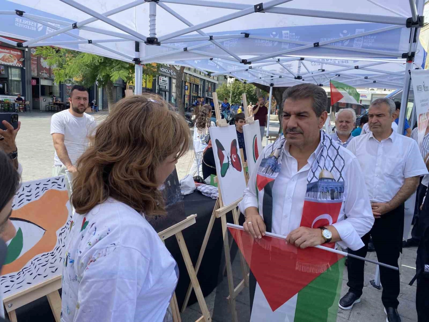 Esenler Belediyesi, Gazze’deki soykırıma dikkat çekmek için “Zulmü Fırçala 308. Gün” etkinliği düzenledi.Esenler Belediyesi, İsrail’in Gazze’deki zulmüne dikkat çekmek amacıyla İlhami Atalay ve ekibinin öncülüğünde yapılan “Zulmü Fırçala 308. Gün” etkinliğini Esenler Dörtyol Meydanında düzenledi. Esenler’deki çocukların yaptıkları resimlerin yer aldığı sergiye Esenler Belediye Başkanı Mehmet Tevfik Göksu ve çok sayıda vatandaş katıldı. Belediye Başkanı Göksu, sergiyi gezip tek tek incelemede bulundu. Bayrakları eline alan çocuklarla hatıra fotoğrafı çekindi.“Filistin meselesi bizim meselemiz”Etkinlikte konuşma yapan Esenler Belediye Başkanı Mehmet Tevfik Göksu, “Dünyanın bilgi ve teknoloji çağında özgürlüklerin güya sınırlandığı çağda nasıl bir soykırım yaşandığı Filistin’i, Gazze’yi resmettiler, zulmü fırçaladılar. Tabi Filistin ve Gazze meselesi bizim için sadece televizyon ekranlarında izlediğimiz ya da izleyeceğimiz bir şey değil. Filistin meselesi bizim meselemiz, Kudüs bizim Kudüs’ümüz, Mescidi Aksa bizim Aksamız. Oradaki her bir acı, bizim acımız. Yüreğimiz Gazze’de, Mescidi Aksa’da, Kudüs’te. Bedenimiz burada olsa da, yüreğimiz hep orada olmaya devam edecek. Bugün Esenler’deki çocuklarla zulmü fırçalayarak bunu bir kez daha söylemeye çalıştık" dedi.