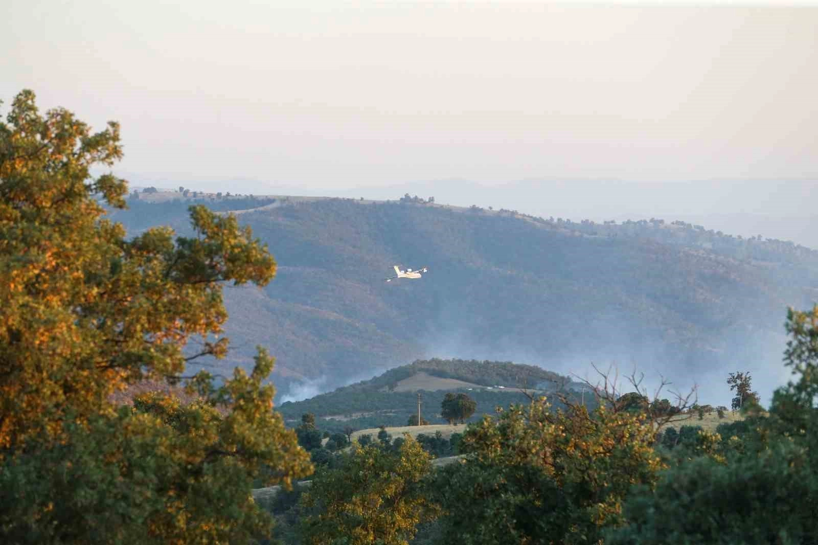 Uşak’ın Eşme ilçesinde iki farklı noktada çıkan yangınlara havadan ve karadan destek devam ediyor.Uşak’ın Eşme ilçesine bağlı Davutlar ve Narıncalı köyleri mevkinde henüz sebebi belirlenemeyen nedenle meşelik alanda yangın çıktı. İhbar üzerine bölgeye çok sayıda arazöz, itfaiye, iş makinesi, 6 helikopter ve 4 uçak ile havadan ve karadan müdahale edildi.Öte yandan akşam saatlerinde havanın kararması nedeniyle helikopter ve uçak müdahalesi sonlanırken, yangın kontrol altına alınabilmek için karadan müdahale ise devam ediyor.