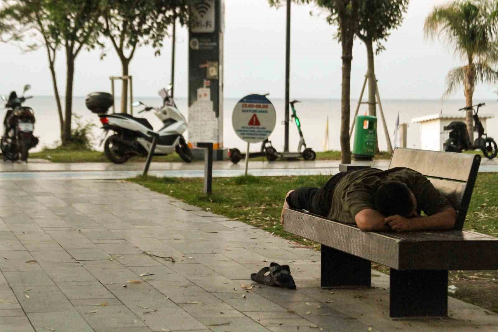 Antalya’da mevsim normallerinin üzerinde seyreden sıcaklıklar gün içerisinde 42 dereceye kadar yükseliyor. Ayrıca nem oranının yüzde 70’e kadar ölçüldüğü Antalya’da sıcaktan bunalan vatandaşlar, geceleri serinlemek için Konyaaltı Sahili’ne akın ediyor.Antalya’da mevsim normallerinin üzerinde seyreden hava durumu gündüzleri 42 dereceye, geceleri ise 30 dereceye kadar yükselen sıcaklıklardan ve yüzde 70’lere varan nemden bunalan Antalyalılar, serinlemek için Dünyaca ünlü Konyaaltı Sahili’nde sabahlamayı tercih ediyor. Sahilde çadır kuran veya battaniyeler sererek uyuyan vatandaşlar, sabahın ilk ışıklarında denize girerek serinliyor. Öte yandan deniz suyu sıcaklığı ise ortalama 28 derece. Bu, hem serinlemek hem de rahatlamak için sahilde sabahlayan vatandaşlara ise ideal bir ortam sunuyor.