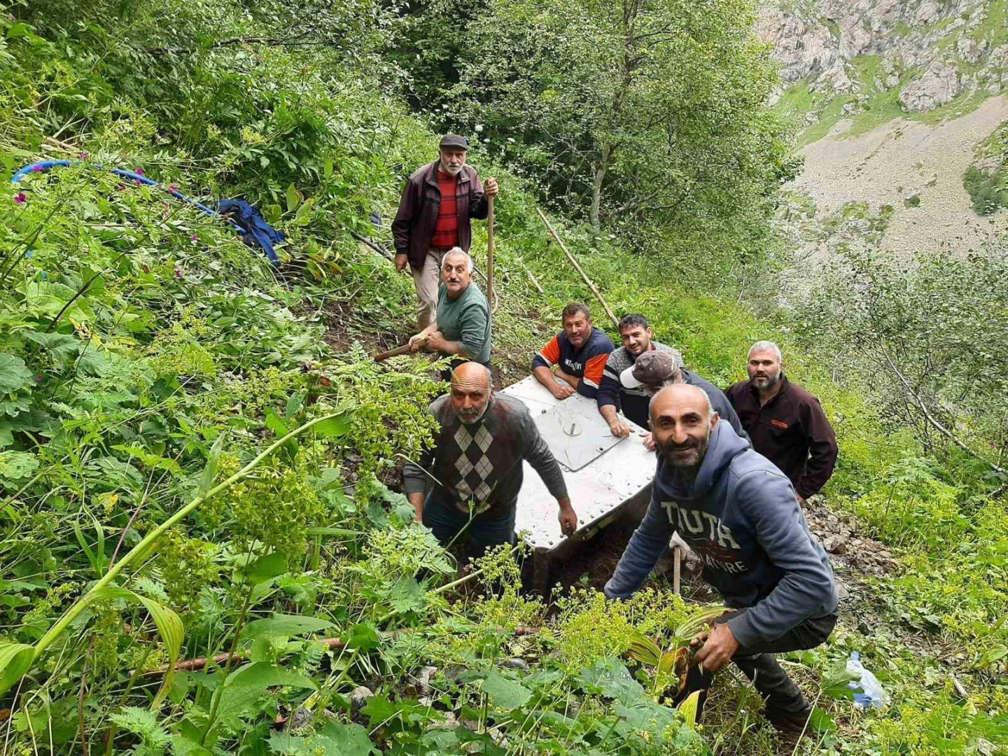 Rize’nin Çamlıhemşin ilçesinde 300 kilogramlık su deposunu yerleştirileceği yere araç yolu olmayınca köylüler, 3 kilometre boyunca kalaslar üzerinde halatlar ile depoyu çekerek yerleştirecekleri yere götürdüler.Fatih Sultan Mehmet Han’ın İstanbul’un fethi sırasında gemileri karadan yürütmesinden esinlenen Rizeliler, "Fatih’in Rizeli torunları" olarak benzer bir çalışmaya imza attı.Rize’nin Çamlıhemşin ilçesine bağlı Kale Köyü’nün su deposu sorununu çözmek için ilginç bir yöntem uygulandı. Köylüler su deposunun yerleştirileceği noktaya araç yolu olmayışından ötürü yaptırdıkları su deposunu köyün tepesine çıkartamıyordu. Su sorunu yaşayan 15 hane ve 7 mahalledeki köy halkı bunun üzerine köy muhtarı Mansur Aydıl’dan yardım talep etti. Muhtar Aydıl, su deposunu nasıl taşıyabilecekleri yönünde düşünmeye başladı. Köy muhtarı Mansur Aydıl, köylülerden yardım isteyerek su deposunu halatlar ile kalaslar üzerinde patika yollardan taşımaya karar verdi. Köy halkını bir araya toplayan muhtar, yaklaşık 300 kilogram ağırlığındaki su deposunu 3 kilometrelik yamaçtan halatlar ile çekerek çıkarmayı denedi. Yaptıkları kalaslardan sal üstüne bindirilen su deposu köylüler tarafından halatlar ile çekilerek yaklaşık 3 günün sonunda zirveye çıkarıldı. Köyün su sorununu el ele vererek çözen köy muhtarı Mansur Aydıl, Karadenizlinin yapamayacağı hiçbir şeyin olmadığını tekrardan kanıtladı.